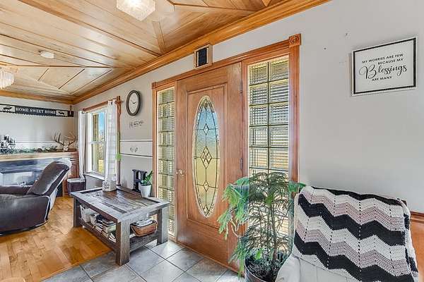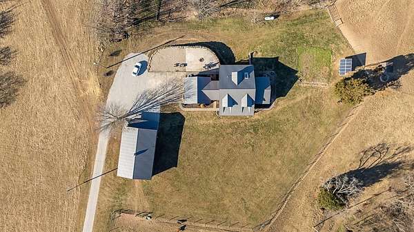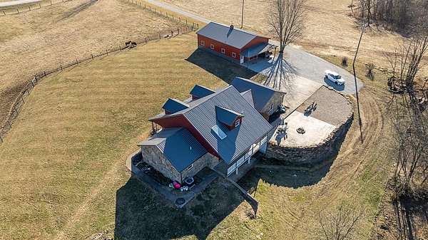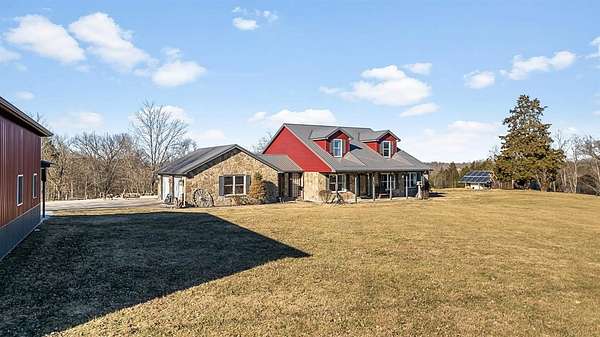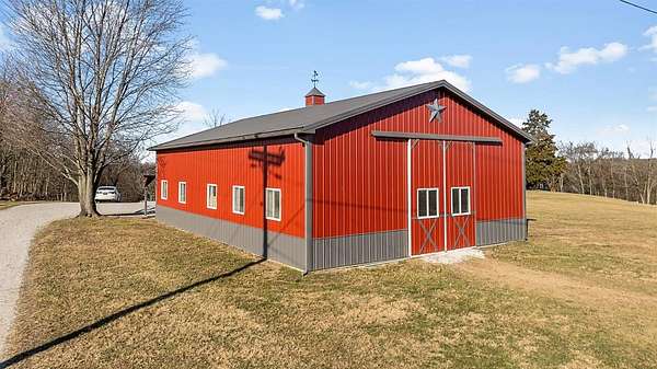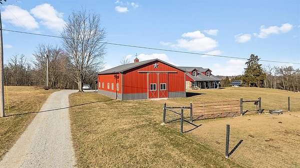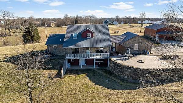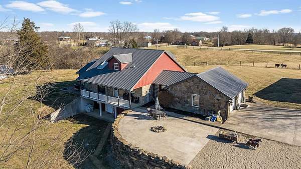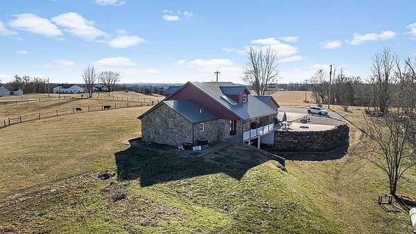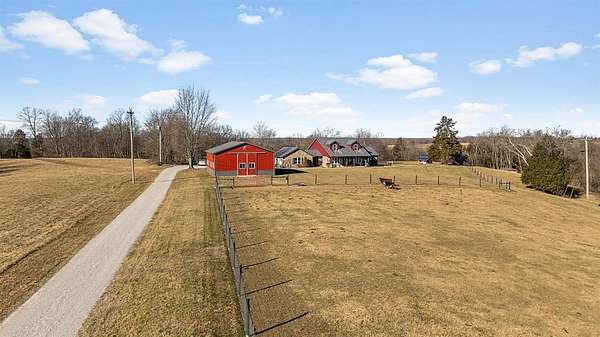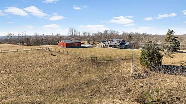 Charming 3-bedroom, 2.5-bath country home set on 8 beautiful acres, perfect for enjoying rural living. Features a 32x48 barn with porch and 4 stalls (built in 21), along with 3 fenced pastures ready for horses or livestock. This home offers hardwood floors, beautiful woodwork, a cozy sunroom, breezeway, and an attached 2-car garage. Large bedrooms provide plenty of room to relax. The unfinished walkout basement is plumbed for an additional bath and offers great potential for future living space. Major updates in 2021 include new siding, roof, and concrete. Unique stonework on the home and retaining wall was hauled from a local creek, adding true country character. A peaceful property with room to roam and make it your own. Schedule your showing today.