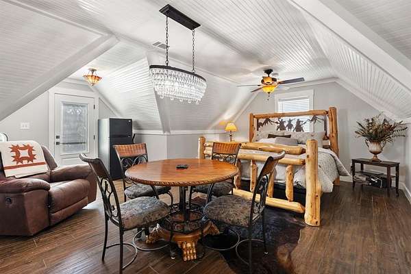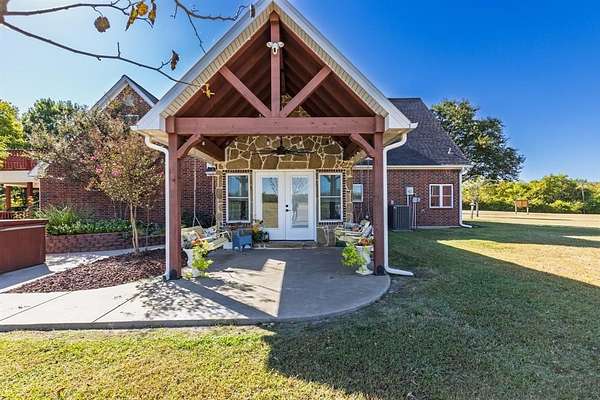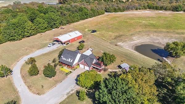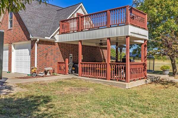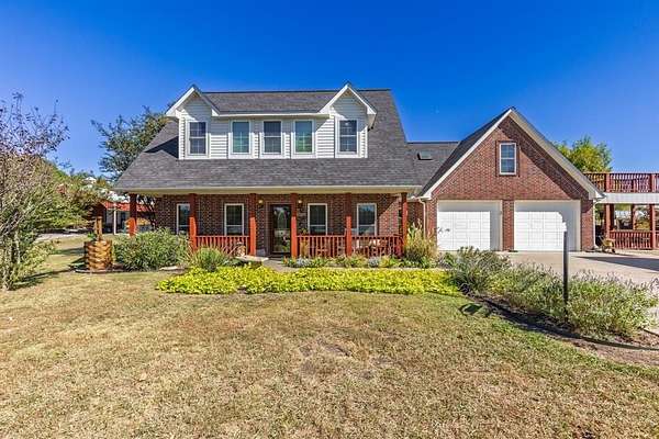 Enjoy the beauty of Country Living in this custom built, two-story Red Brick home. Nestled on 12 peaceful Acres, this Property offers 2,752 sq ft of well-designed Living Space with 4 Bedrooms, 3.5 baths, and a 640 sq ft private In-Law Suite or Guest Apartment above the Garage. A welcoming front Porch leads into a spacious Living Area featuring a Gas Log Fireplace, Rich Wood Flooring, Crown Molding, and Nickel Gap Accents. The updated Kitchen is a Chef's Dream with Granite Countertops, Bosch Dishwasher, Samsung Propane Range, GE Convection Microwave with Air-Fryer, and plenty of Pantry Storage. The Main-Level Primary Suite features a Granite Double Vanity, Jetted Soaking Tub, Walk-In Shower, and a generous Walk-In Closet. Upstairs you'll find two large Guest Bedrooms with Oversized Closets and a shared Bath. The private Apartment offers a full Bath with Rain Shower and Skylight, Balcony, and a Separate Entrance-perfect for Guests, Extended Family, or Rental Income. Additional Highlights include a Home Office with Cathedral Ceiling and French Doors, Laundry Room with Cabinetry and Shelving, and Dual Pantries. Outdoor Living Shines with three Covered Porches, a 75x40 Shop with a 3-Car Carport and Concrete Floor, two Storage Sheds with Porches, a Hot Tub, Raised Garden Beds, Mature Landscaping, Fruit and Flowering Trees, a pond with Dock, and Fenced Areas for Pets or Livestock with Frost-Free Hydrant, RV Hookup and a Leased Propane Tank. Energy efficient 5-Ton, 2 Zone Heat Pump. Conveniently located 15 Minutes from Leonard and Bonham, and 20 Minutes from Bois D'Arc and Ralph Hall Lakes. Ag Exempt or will subdivide, and Move-In Ready-Furnishings Negotiable for Turnkey Option.