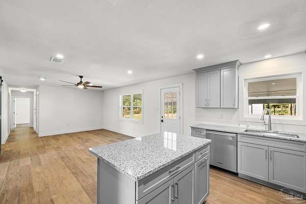 Welcome to 7988 Malone Rd in beautiful Milton, FL, where peaceful country living meets modern comfort! Situated on 5.2 private acres, this completely remodeled, move-in-ready home offers the perfect blend of space, style, and flexibility. From the moment you walk in, you're greeted by a spacious living room filled with natural light, creating a warm and inviting atmosphere for relaxing or entertaining. The fully updated kitchen is a true highlight, featuring brand-new cabinets, stunning granite countertops, and stainless steel appliances. All ready for everyday living or hosting family gatherings. Just off the main living area, you'll find an additional flex room that could easily serve as a home office, playroom, hobby space, etc. The bedrooms are generously sized, offering comfort and versatility, while both bathrooms have been completely remodeled with modern finishes and thoughtful updates. Step outside to enjoy the covered back patio and spacious backyard. The large detached garage provides excellent storage or could function as a workshop for projects and hobbies. With 5.2 acres, the possibilities are truly endless. Get ready to enjoy the wide-open space and privacy. You'll love the quiet country feel while still being just a short drive to town for shopping, dining, and everyday conveniences. Properties like this don't come along often, schedule your showing today!