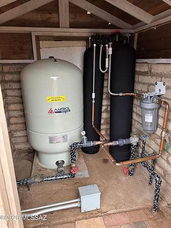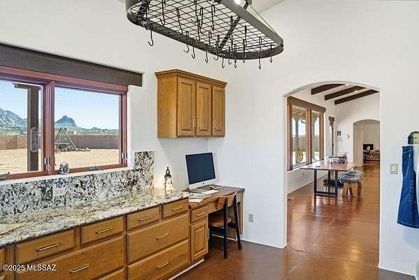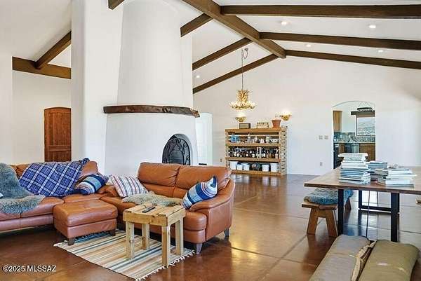 Beautiful Dragoon Mountain Ranch Estate and a Casita with NEW 2026 SP3 Water Treatment System throughout AND NEW 2026 HVAC System in the Casita! Designed by famed architect Bennie Gonzales amid the historical Dragoon Mts. Spacious modern estate on 36+ acres with NEW 2026 solar gates. The 4-bedroom, 3-bath main home features a split floor plan, heated concrete floors, fresh paint. NEW granite counters and gas stove in the kitchen; NEW washer & dryer. Enjoy the romantic beehive fireplace in the great room & panoramic views from every window! Master and casita closets have cedar paneling, NEW Toto toilets & shower heads in main house. RV hook-ups, Lg courtyard, huge back patio, fruit trees, raised garden beds, 5ft block fencing, snake gates & an oversized garage! More info info in Documents.