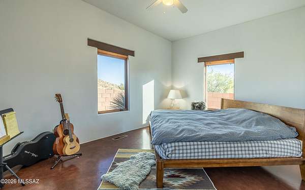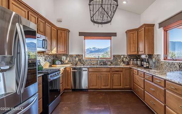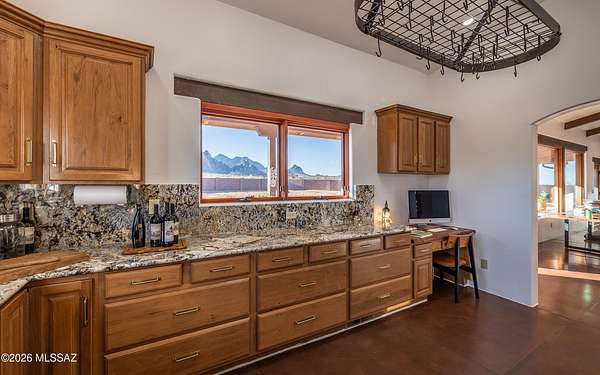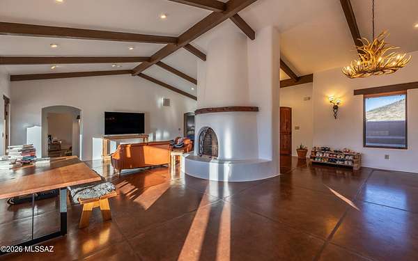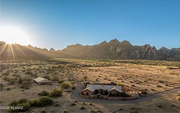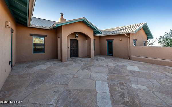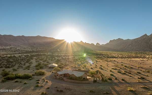 Beautiful Dragoon Mountain Ranch Estate & Casita with NEW SP3 Water Treatment System throughout, NEW HVAC System in the Casita! Designed by famed architect Bennie Gonzales amid the historical Dragoon Mts. Spacious modern estate on 36+ acres with NEW solar gates. The 4-bedroom, 3-bath main home features a split floor plan, heated concrete floors, fresh paint. NEW granite counters/backsplash in the kitchen; NEW washer & dryer. Enjoy the romantic beehive fireplace in the great room. Panoramic mountain views from every window! The master & casita closet have cedar paneling. NEW Toto toilets & shower heads in main house. RV hook-ups, Lg courtyard, huge back patio, fruit trees, raised garden beds, 5ft block fence, snake gates & Casita is 1-bed, 1-bath and oversized garage! More info in Documents