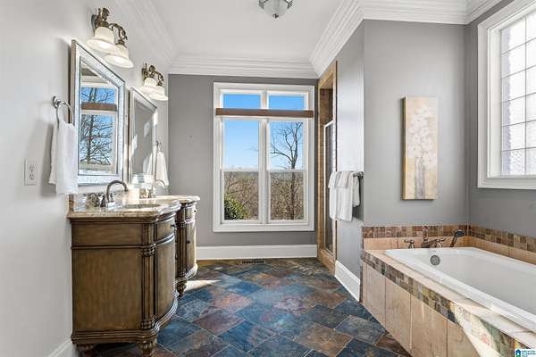 - Central Vacuum, Dressing Room, French Doors, Home Theater, Jetted Tub, Linen Closet, Recess Lighting, Separate Shower, Separate Vanities, Sitting Area in Master, Tub/Shower Combo, Walk-In Closets