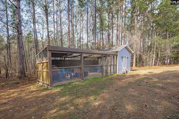 Custom home on 7.49 private acres at the end of a long, quiet cul-de-sac road. Built in 2009, 4BR/2.5BA, 2,348 sq ft; this home is in great shape. Comfortable and roomy living/dining spaces, spacious primary suite, wraparound porch & deck, plus wide open yard surrounded by woods.Features you'll love include an attached 2-car garage, large, tucked-away shop (~40'x50') that includes an office nook and workout room, garden shed, and separate clubhouse building w/electric & new flooring, ideal for office, studio, or flex space. Plus, you'll enjoy a fenced garden area and chicken coop! Lots of recent improvements, including a remodeled kitchen w/ new cabinetry & appliances (2023), HVAC (2022), crawlspace moisture barrier w/ transferable warranty (Dec 2025), gutters (2022), exterior paint (2023), new flooring (2022), interior paint (2022-24), and more. No HOA. Very convenient to I-77 (10 min), Scout Motors (15 min), Blythewood (15 min), Columbia (30 min), Charlotte (just over 1 hr). Rare acreage with privacy, all the extras, and easy access to town. Disclaimer: CMLS has not reviewed and, therefore, does not endorse vendors who may appear in listings.