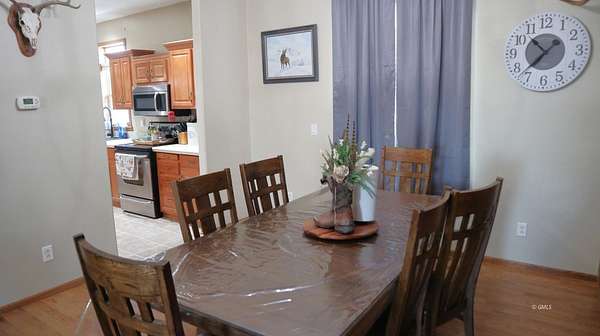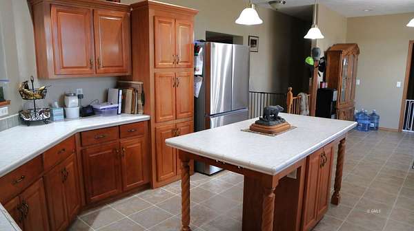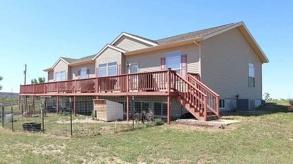Experience peaceful country living just 15 miles from Glendive in this spacious and well-maintained 4-bedroom, 2.5-bath home situated on 18.69 scenic acres. Built in 2009, this 4,080 sq ft property offers breathtaking views of the Makoshika hills, best enjoyed from the expansive wraparound deck-perfect for entertaining or relaxing in nature. Inside, the main level features a spacious kitchen, formal dining room, a primary suite with a walk-in closet, two additional bedrooms, a full bathroom, and a convenient laundry area. The full walk-out basement includes a second kitchenette, a large family room with tile flooring, a fourth bedroom with a walk-in closet, a half bath, and generous storage space throughout. Additional features include a 900 sq ft detached garage, private well and septic, perimeter fencing, and livestock corrals-ideal for hobby farming or horse owners.