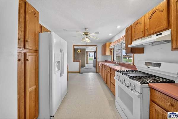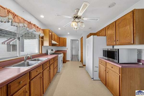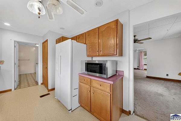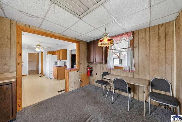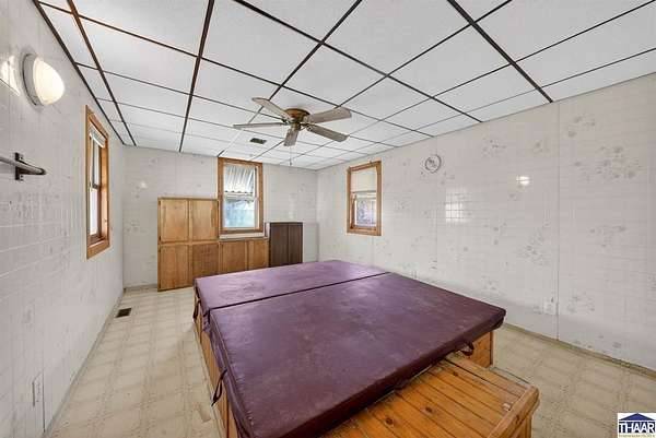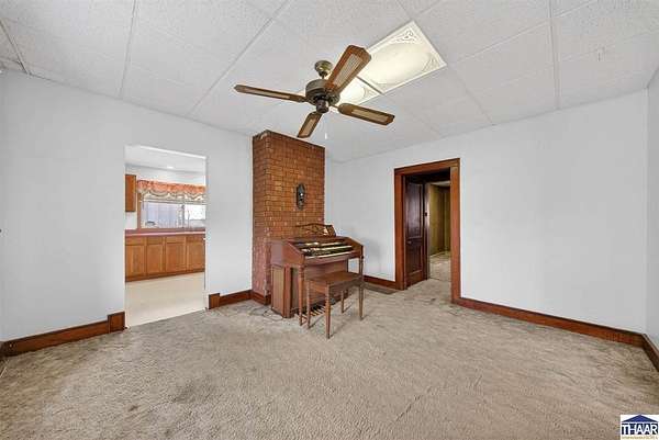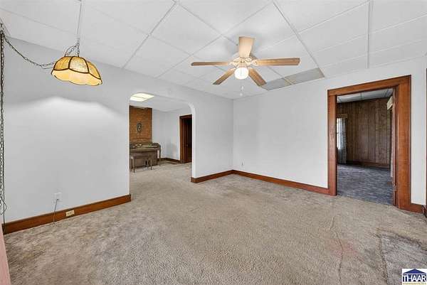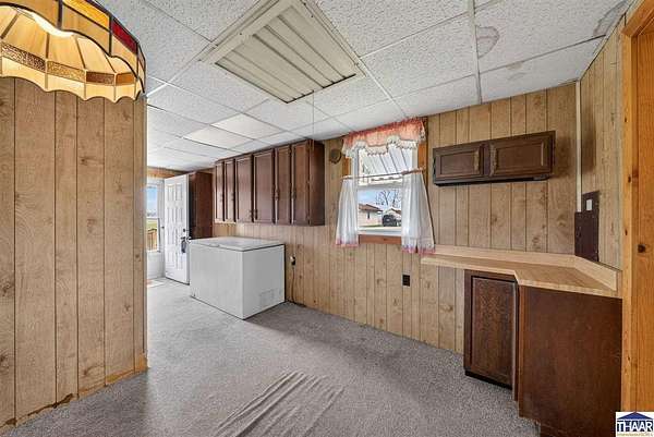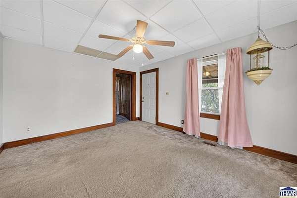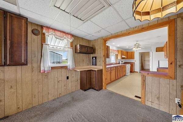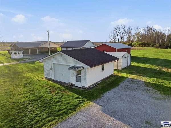 Charming farmhouse situated on 1.5 acres offering space, functionality, and potential just minutes from Rockville. This 2-bedroom, 1-bath home features 1,387 square feet with main-level laundry, a spacious kitchen, and includes accessibility features such as a walk-in shower. Enjoy outdoor living with a covered front porch and a spacious deck, perfect for relaxing or entertaining while taking in the surrounding property. Additional interior highlights include a finished hot tub room that could potentially be converted into additional living space or a third bedroom. The attic also offers potential for future expansion. The property includes multiple outbuildings, including a detached 1-car garage with workshop, a 36x24 pole barn with a 2-car overhead door, a covered carport, and a storage shed. Both the garage and pole barn are equipped with electricity. Home does require repairs and updates but offers a great opportunity for buyers looking for acreage, outbuildings, and the ability to add value. Schedule your showing today and see the potential for yourself!