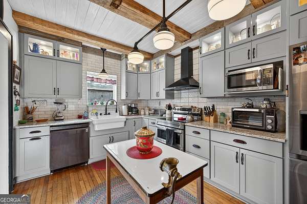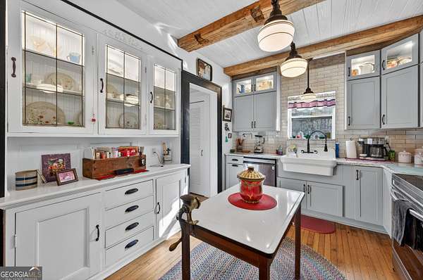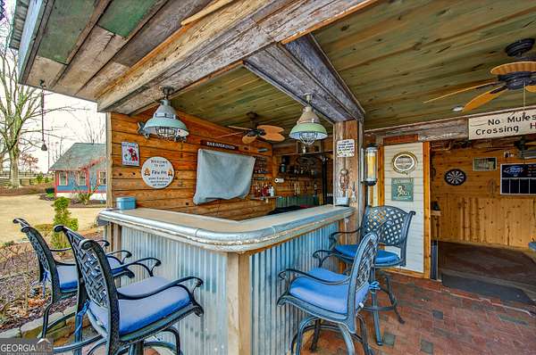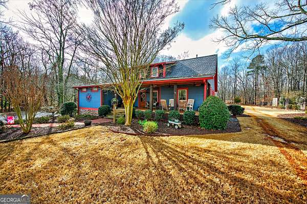 Escape to your own vacation-style retreat without leaving the city. Set on 2.49 private acres, this fully remodeled home offers approximately 2,750 finished square feet including a finished basement, blending everyday convenience with resort-like living. Warm wood floors, exposed beams, and fully remodeled kitchen and baths create a relaxed, lodge-inspired feel throughout. Step outside to brick patios, a fire pit, and a one-of-a-kind enclosed outdoor bar built from repurposed wood, perfect for entertaining or unwinding year-round. Located minutes from Bethel Park and Two Mile Creek Park on Lake Lanier, enjoy boating, trails, and waterfront recreation while staying close to shopping, dining, and major routes. A rare opportunity to live where every day feels like a getaway.