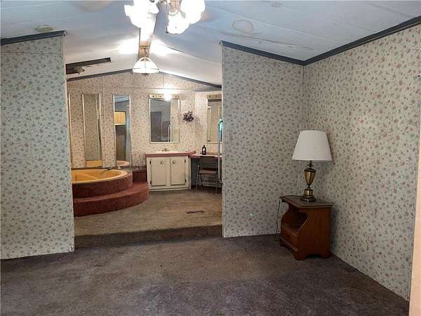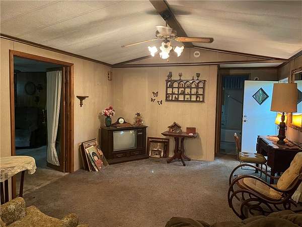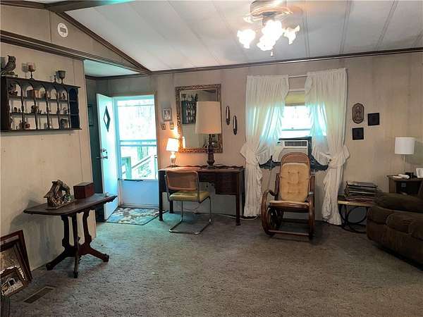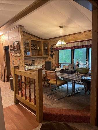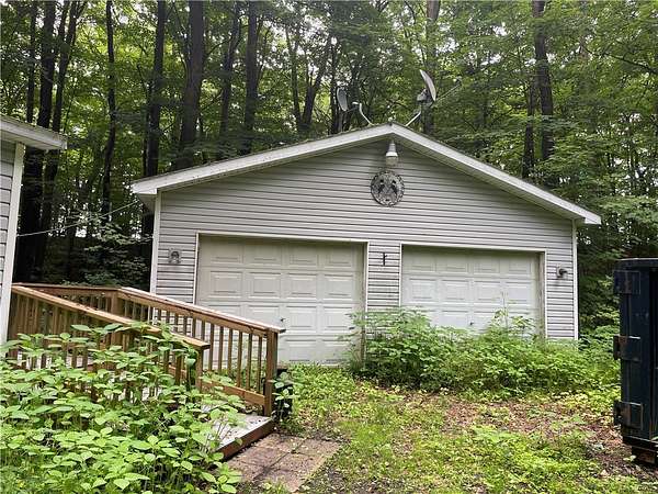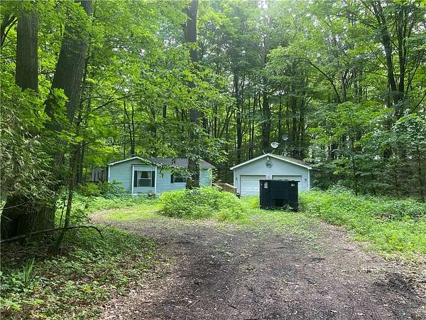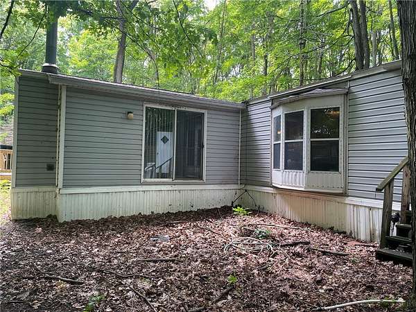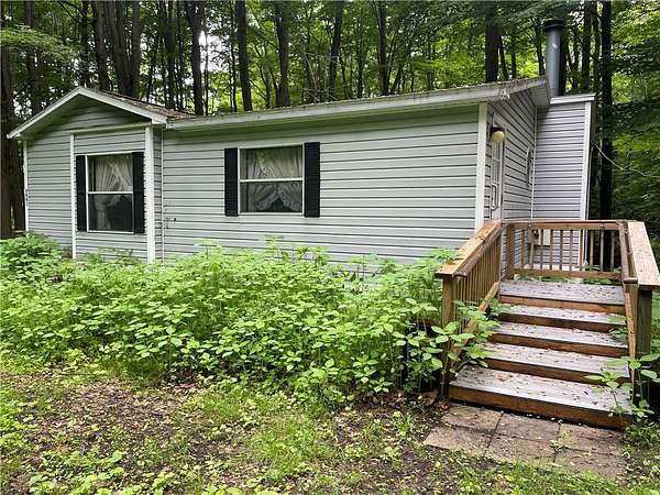 Handyperson special in beautiful scenic location outside of Ovid. 1988 manufactured home has two smaller bedrooms plus a large primary suite with dual vanities, garden tub, and stall shower. Second full bath has full size tub/shower. Two generous size living rooms plus an elevated dining area alongside the kitchen. Oversize two car garage for plenty of extra storage. Densely wooded lot with Sheldrake Creek flowing along one side. Tons of potential here to make this your country oasis.