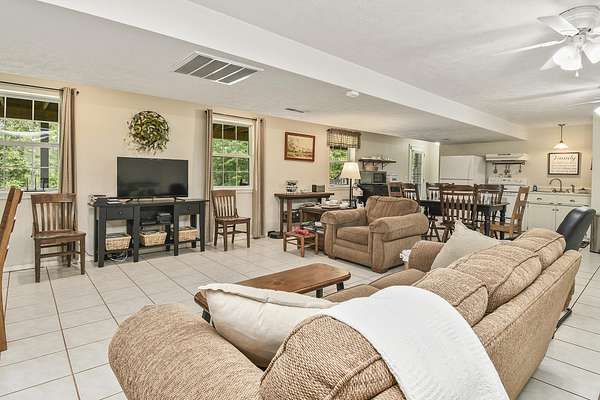 Nestled in the woods, this 5-bedroom, 3-bath home offers privacy, space, and an abundance of extras. The upper level features a primary suite with a private bath, along with 1-2 additional bedrooms and a full bath. The walkout basement includes 2-3 bedrooms, a full bath, a complete second kitchen, and an additional living area, providing versatility for a variety of uses.Highlights include beautiful hardwood and tile flooring, generous closet and storage space, and the convenience of a whole-house generator. The covered back deck overlooks a peaceful setting with abundant wildlife.Situated on approximately 10 acres with a mix of wooded and cleared land, the property also features a separate shop for projects or storage.