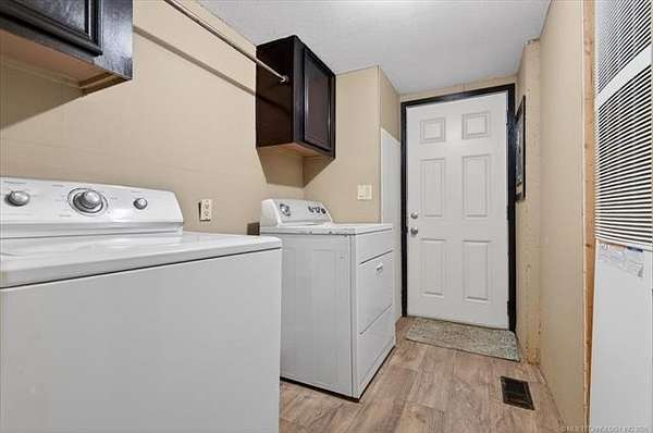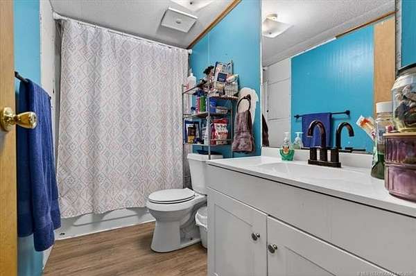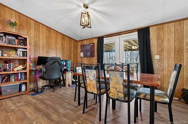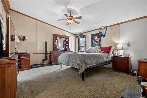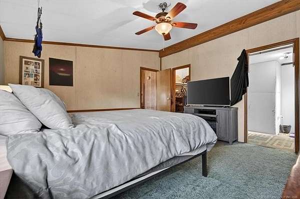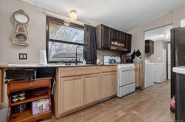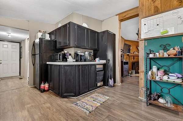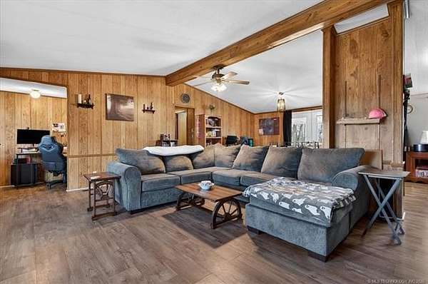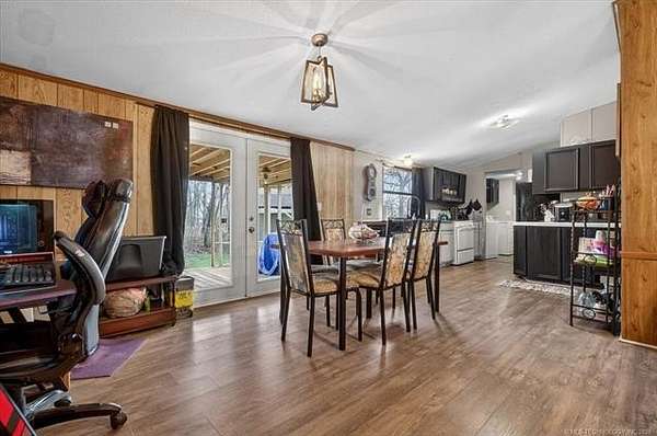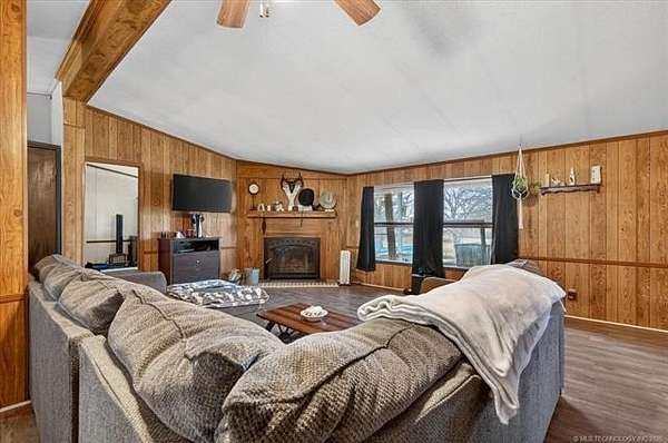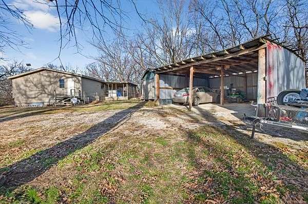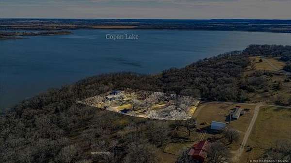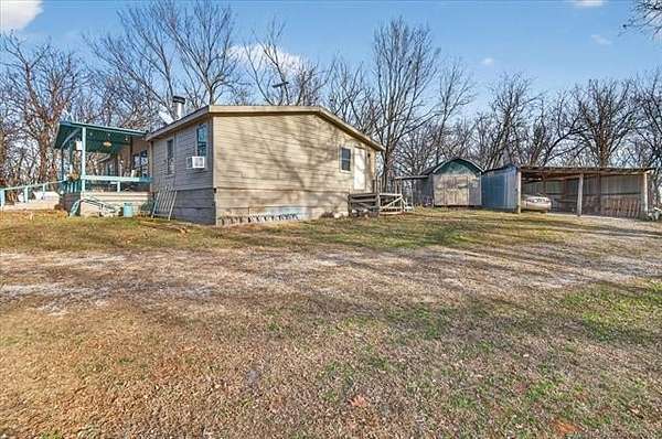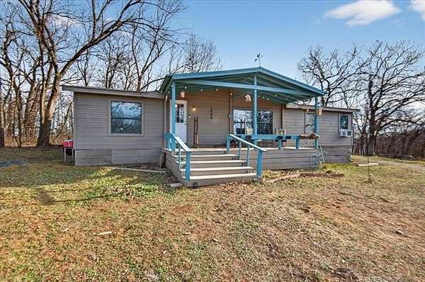 Nestled on 1.7 acres bordering Corps of Engineers land at Copan Lake, this factory-built home offers a rare blend of privacy, recreation, and everyday comfort. Located next to Post Oak Campground, the property provides direct access to a hiking trail leading straight to the lake, making it the perfect spot for swimming, fishing, and nearby hunting access--all right from your backyard. Inside, you'll love the open floor plan with a split bedroom design, enhanced by vaulted ceilings, new wood-look laminate flooring, and a cozy wood-burning fireplace. The kitchen features newer cabinetry, two pantries, and a gas stove, offering plenty of storage and functionality. The large primary bedroom includes a private half bath already plumbed for a future shower or tub, while the hall bath offers a tub/shower combination. A spacious laundry room provides room for a freezer or extra refrigerator. Enjoy quiet mornings or evening sunsets on the 22x8 covered front porch, and take advantage of the 10x16 shop with electric, 24x24 carport, and peace of mind with a new roof (2022) and new furnace (2018). If you're looking for a lake-area retreat with room to roam and endless outdoor enjoyment, this property is truly something special.