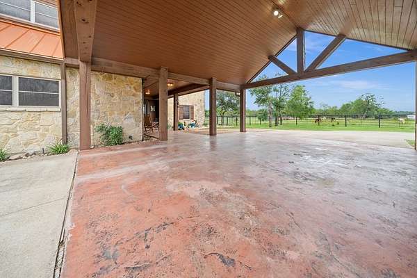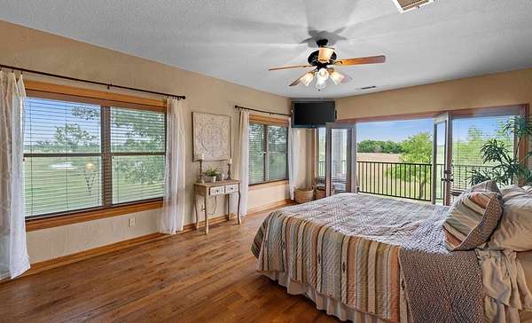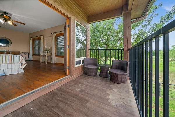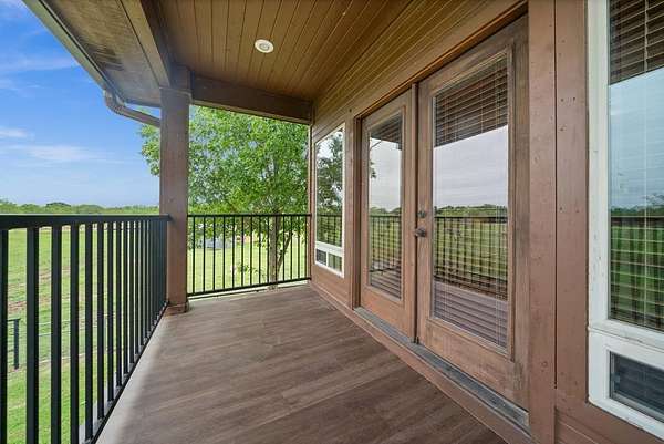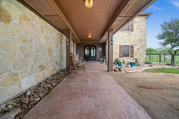 - Automatic Gate, Barn(s), Covered Front Porch, Creek(s)/Stream(s), Detached Storage, Fence, Fenced Yard, Gutter(s), Pond(s)/Lake(s)