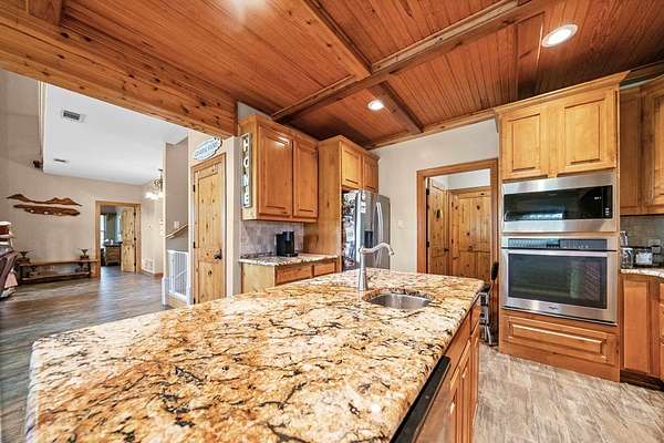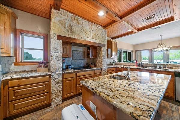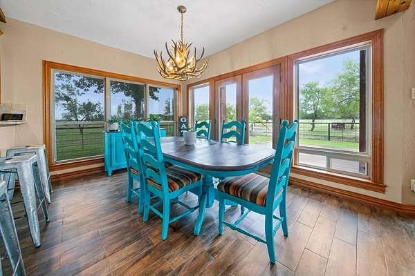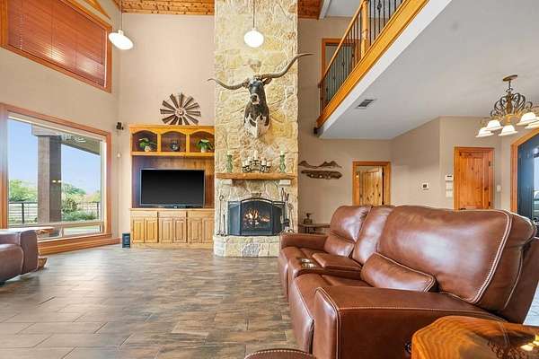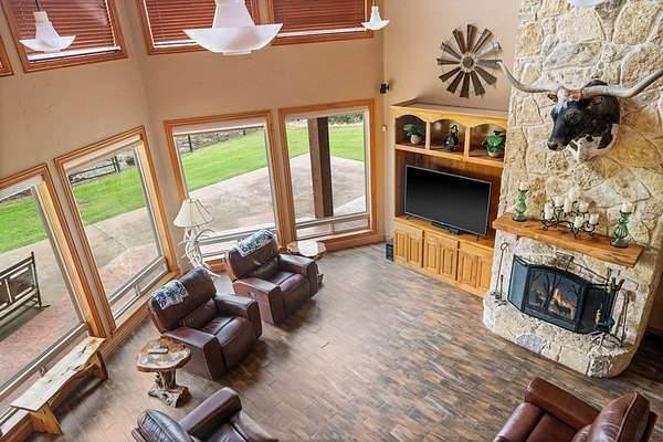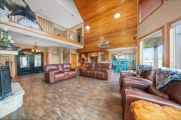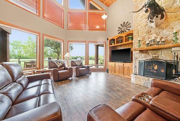 This magnificent Texas Ranch is located only 38 miles from Dallas & 37 miles from Athens. Not only do you get a stunning home but the property also includes a 30x100 shop, 1800 sq foot "Party Barn", gated entrance, pond, 5 pastures & exceptional fencing. When you enter the front door, you're greeted w/ 25-foot wood ceilings & beautiful windows that overlook the property. The kitchen is a stunner w/ stone, granite and premium appliances. All 4 bedrooms are en suites. Downstairs floors are ceramic tile and upstairs floors are hand scraped hardwood. 2 bedrooms upstairs & 2 downstairs. Dual zoned Heat/AC & a 2023 24 gauge standing seam cooper roof are a few more perks. The "party barn" has 2 bathrooms, a bar with a full kitchen and a welcoming patio. The land is set up for your animals with loafing sheds, cross fencing, cattle pens, catch pen, calf table, etc. Don't miss this one.
