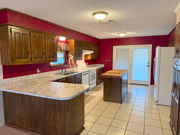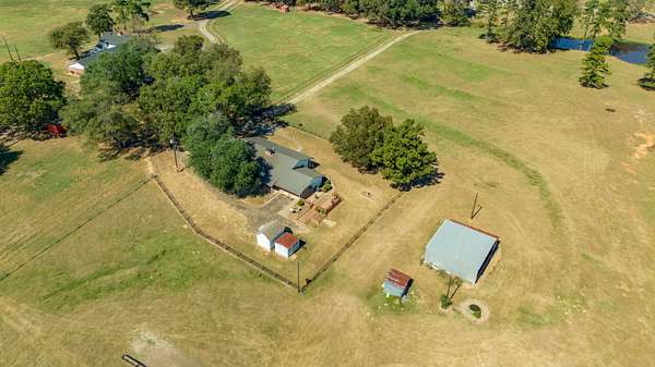 2 Carport Rancher with a full length covered front porch, metal roof & almost 20 acres with 2 ponds, pasture & scattered trees. The home features an open floorplan with a large kitchen with tile floors, island & pantry. The kitchen is open the dining room, & the living room has a brick WBFP with insert & blower. The bedrooms are large, & the bathrooms have plenty of room. The utility room is off the 2 car carport. Attached to the carport is a large wooden deck for outside entertainment. There's also a 10x15 wood storage/play house, 10x10 metal storage building, a 40x32 metal lean-to with stalls, a 49x60 shop with one side open to the pasture & the other open to the shop with 4 stalls, a tack room and an 11x10 pump house. The land is absolutely beautiful! This is the perfect place to make into your homestead.