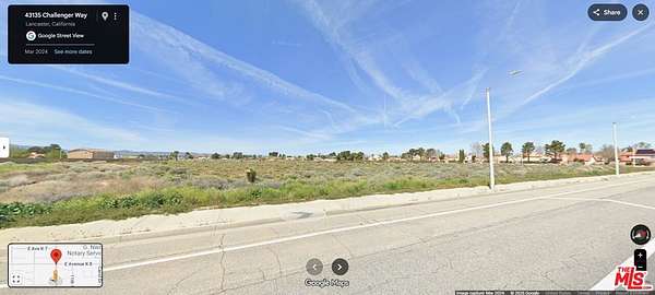 Est $4,079/moResidential land situated for an excellent development opportunity, first time on the market in almost 50 years. One parcel totaling 8.97 acres with LRR7000 zoning. Corner lot right in the middle of the city, with lots of residential development nearby. Probably the best-priced piece of RES land with these characteristics. Get it before it is gone. Buyer to verify Zoning and all other facts for the subject. Google: AVE K8/Challenger Wy Lancaster CA 93535