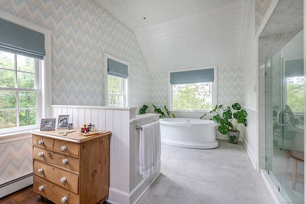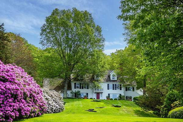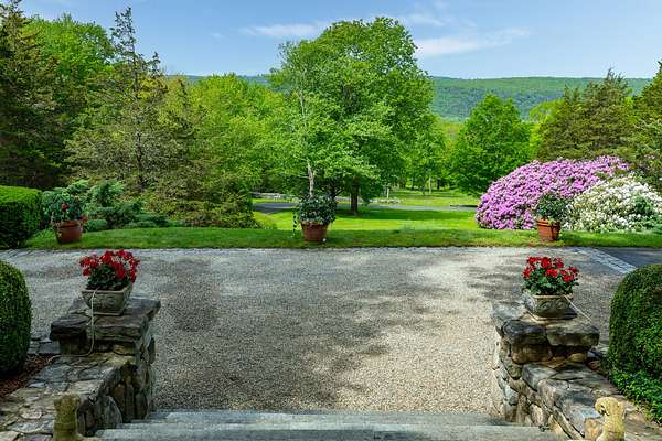Privately Sited on a Hill in the Midst of 31+ acres, this Elegantly Renovated 5,000+ sq ft Colonial Offers Panoramic Sunset Views and Exceptional Privacy. Graciously Proportioned Rooms Populate the Main Level & Include: a Vaulted-Ceiling Living Room with Fireplace, Paneled Library, Inviting Family Room, and a Spacious Eat-in Kitchen with Top-tier Appliances. The Refined Primary Suite Features a Fireplace, ModernLuxury Bath, and Dressing Room. A Separate 1-Bedroom Apartment Adds Versatility. Outdoors, Discover A Heated Gunite Pool Surrounded by Mature Award-Winning Gardens. Large Stone Terraces & a Meandering Garden Path Add a Texture to this Layered Property. 3-Car Over-sized Attached Garage. Only Minutes from Roxbury, Washington Depot, and Historic Woodbury CT. First Time on the Market in Over 35 Years