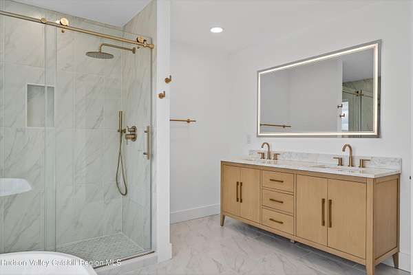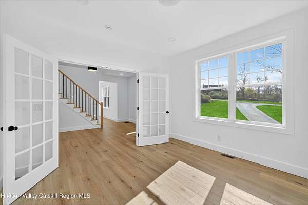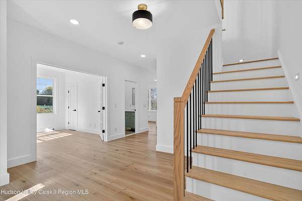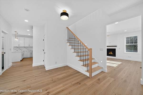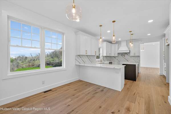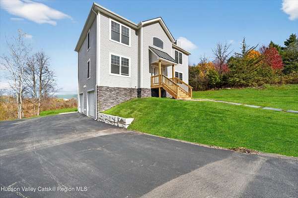 Welcome to your new home in the heart of Marlboro's scenic wine and apple country. This brand new construction, 3-bedroom, 3-bath Colonial blends modern design, thoughtful craftsmanship, and sweeping Hudson Valley views on 1.7 private acres within the Marlboro School District. Step inside to find 2,580 square feet of beautifully finished living space with 9-foot ceilings and 8-inch wide plank European white oak floors. The open-concept main level flows from the living and dining areas to a chef-inspired kitchen featuring quartz countertops, custom cabinetry, a pot filler, and a bright breakfast nook overlooking the mountains. A flexible first-floor room with a full bath adds convenience and can serve as a home office, guest suite, or creative space. Upstairs, the owner's suite offers cathedral ceilings, fireplace, a walk-in closet, and a spa-style bath with a soaking tub, dual sinks, and a tiled step-in shower. Two additional bedrooms, a shared bath, and a cozy loft area complete the second level, providing plenty of space for rest and relaxation. Built with attention to detail and modern efficiency, this home includes spray foam insulation, smart thermostats, and a Ring camera. A two-car attached garage provides easy access, while the Trex back deck with vinyl railings offers the perfect spot to enjoy panoramic views of Marlboro's rolling hills and colorful sunsets. The exterior is finished with topsoil and grass seed, ready for your landscape to thrive. Enjoy a peaceful setting just minutes from local vineyards, orchards, and farm-to-table dining. Easy access to the Mid-Hudson Bridge and major commuter routes connects you quickly to Newburgh, Beacon, and New York City. Additional Information: Parking Features: 2 Car Attached.