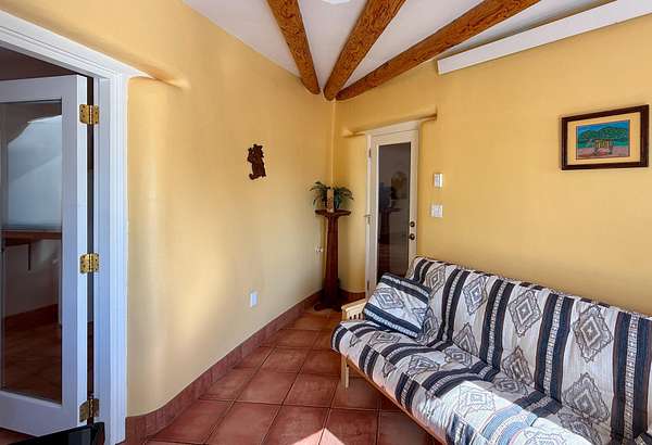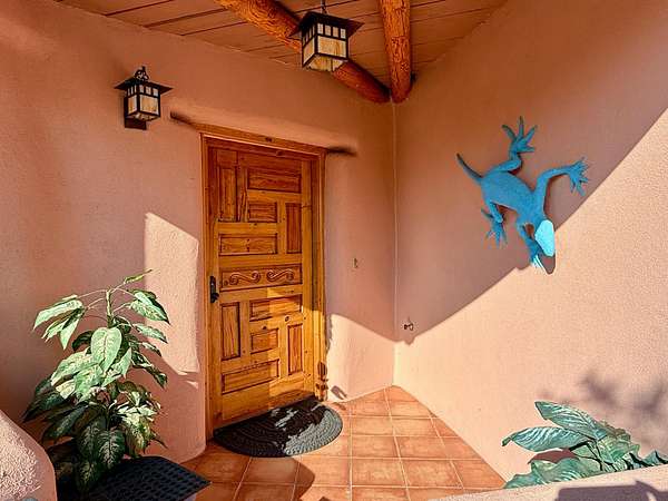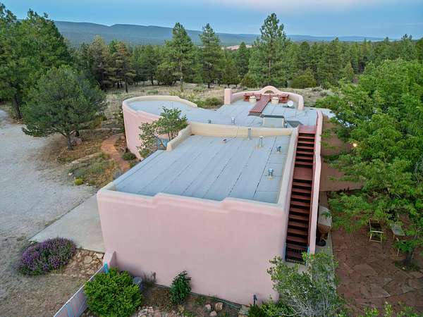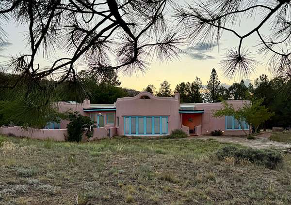 This contemporary adobe home on 11.78 acres was built by Ken Forlow, a renowned local builder celebrated for an artistic eye and complete attention to handcrafted detail. From the moment you step inside, this house will enchant you. The great room with its curves and kiva fireplace looks out to the distant Zuni mountains. The primary bedroom has a second kiva fireplace and a sunroom with its own entrance. A large shaded courtyard wraps around the house, an outdoor oasis with views in all directions. Climb the stairs to a rooftop sitting area for Dark Sky stargazing or a sunrise meditation session. So many special touches, must be seen in person to truly appreciate. 2.5 hours from Albuquerque but worlds away in Timberlake Ranch, a friendly community with HOA dues of only $460/year.