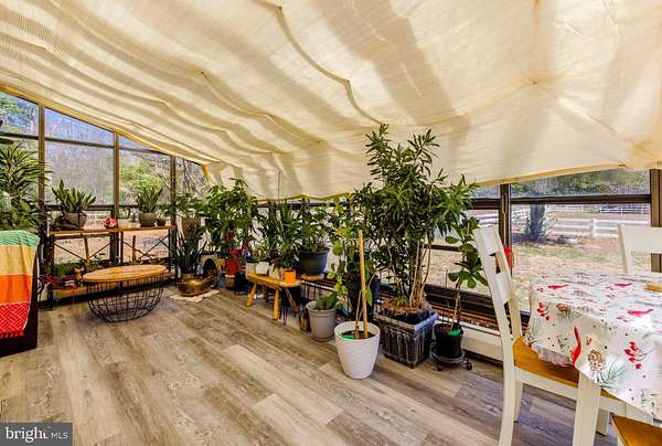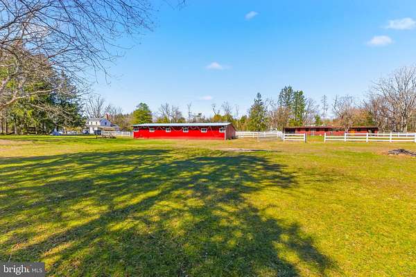 Set on a peaceful 5-acre parcel in the quiet countryside of Tabernacle, 8 Butterworths Bogs offers a unique opportunity to enjoy country living with the space and amenities ideal for animal lovers, equestrian use, or hobby farming. The property features two well-appointed barns designed to accommodate a variety of livestock. The primary barn includes eight stalls along with electric service, a frost-free hydrant, a center aisle, and a dedicated tack area-well-suited for horses or larger animals. A second barn provides four additional stalls, offering flexible space for goats, alpacas, donkeys, or other smaller livestock. Four generous paddocks surround the barns, each enclosed with attractive white PVC fencing for both safety and visual appeal. The farmhouse welcomes you with a classic front porch, the perfect spot to unwind while enjoying the tranquil setting. Inside, the living room is warm and inviting, highlighted by a fireplace and genuine hardwood floors that extend throughout the home. The dining room offers charming character with built-in cubbies and a brick accent wall, and patio doors open to a bright sunroom that overlooks the property. The kitchen has been thoughtfully updated with attractive cabinetry, plenty of counter space, and durable tile flooring, creating a functional space for cooking while taking in views of the surrounding acreage. The home offers three bedrooms in total, including a convenient main-floor bedroom located near a full bathroom just off the mudroom and laundry area. Upstairs you'll find two additional bedrooms along with another full bathroom, providing comfortable living space. Outdoor living is just as appealing, with a stamped concrete patio located behind the home-an ideal spot for entertaining or enjoying quiet evenings outdoors. The patio leads to a detached garage that offers extra storage or workshop potential. A chicken coop with a spacious covered run is also located on the property. Whether you're caring for animals, relaxing by the fire, or taking in the open views of your private acreage, 8 Butterworths Bogs offers the perfect blend of rural charm and everyday comfort.