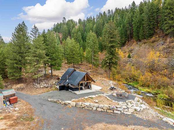 Discover rare privacy and panoramic mountain views on private acreage along the headwaters of the Little Spokane River, just 25 miles north of Spokane. This unique property features a 2015 remodeled, off-grid 960 sq ft cabin set along the river's edge-ideal for a peaceful retreat, hunting base, or weekend escape. Enjoy abundant wildlife and expansive open space rarely found this close to town. Incredible potential for recreation, seclusion, or future development. Sale contingent upon buyer's concurrent purchase of xx N Chain Lake Dr; combined parcels total approximately 52 acres and include frontage on Chain Lake and the Little Spokane River, along with prime building sites overlooking Chain Lake.
