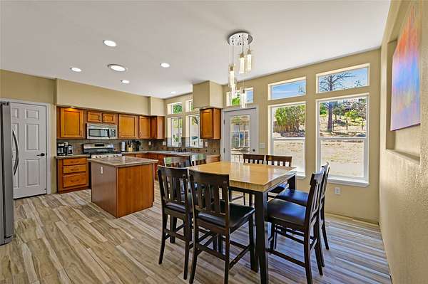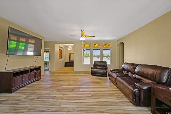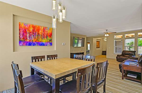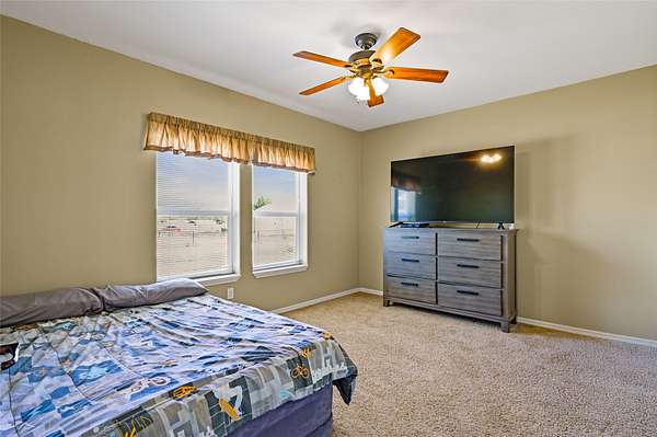 This beautifully maintained home is PRICED BELOW APPRAISED VALUE. Single-level home in a great location. Quiet neighborhood with wide-open views that capture the serenity of Northern New Mexico, filled with natural light, creating a bright and airy feel throughout. The open-concept living and dining areas feature modern finishes-perfect for everyday comfort and entertaining. At the heart of the home is a thoughtfully designed kitchen, complete with stainless steel appliances, rich wood cabinetry, an island, and windows that frame the tranquil landscape. The generous lot offers endless potential. Embrace the stunning skies and natural beauty that define Northern New Mexico living. WILLING TO ACCEPT REASONABLE OFFERS
