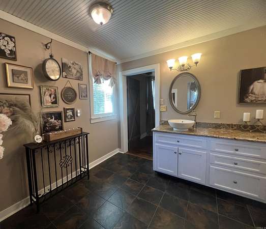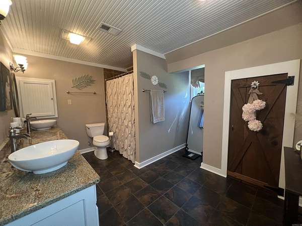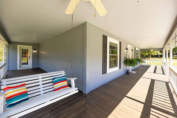 Welcome to your dream retreat - a stunning modern farmhouse nestled on 2.43 acres of a landscaped paradise. This captivating home perfectly blends rustic charm and refined luxury, offering an inviting wrap-around porch, and an open-concept kitchen and living area designed for both comfort and entertaining. On the main floor you will find beamed ceilings, a cozy fireplace, separate dining room, study, bonus room, and a beautiful kitchen with granite countertops and island, as well as a breakfast nook that overlooks a sparkling saltwater pool. The spacious primary suite is a true retreat with a custom-designed walk-in closet, master bath with double vanities and elegant finishes. Additional bedrooms and bathrooms allow for guest to have a comfortable stay as well as privacy. There is a flex space that has served s an office and sitting area which can easily be converted into a fourth bedroom. This extraordinary home offers endless possibilities. The property has a 26X24 shop w/dust collection system for woodworking and a 36X24 building with central heat and air, a half bath and loft that can serve as a garage or guest suite, fire pit, 2 car carport & lots of curb appeal.
