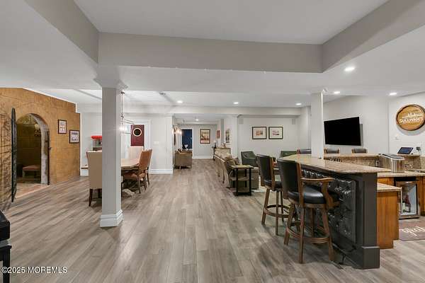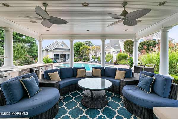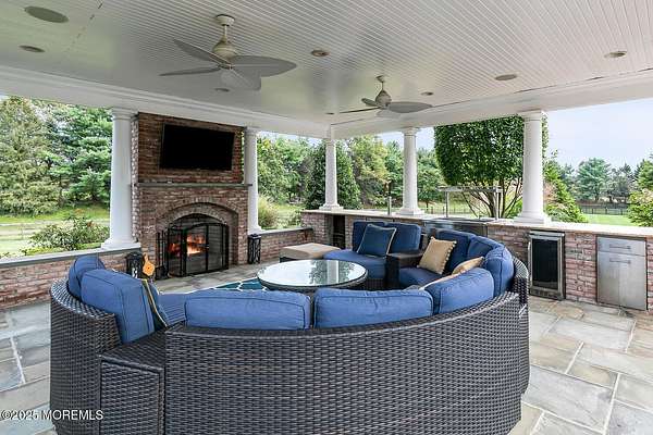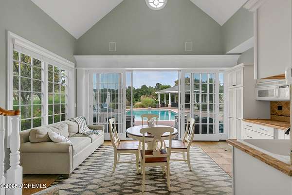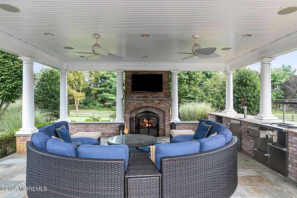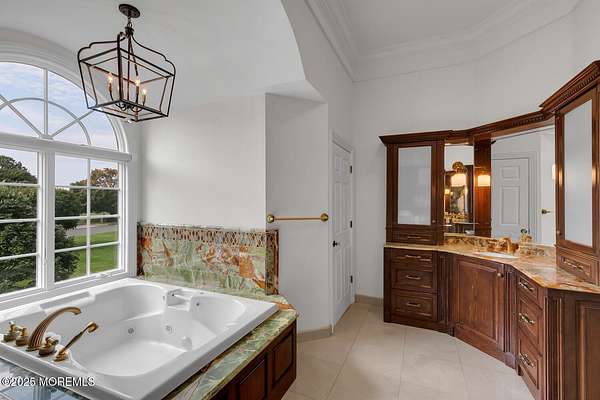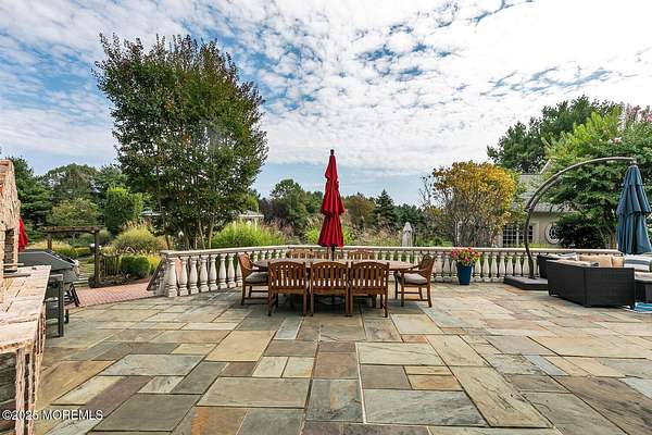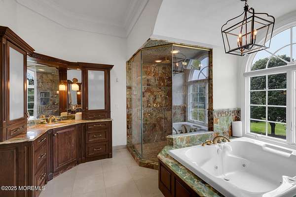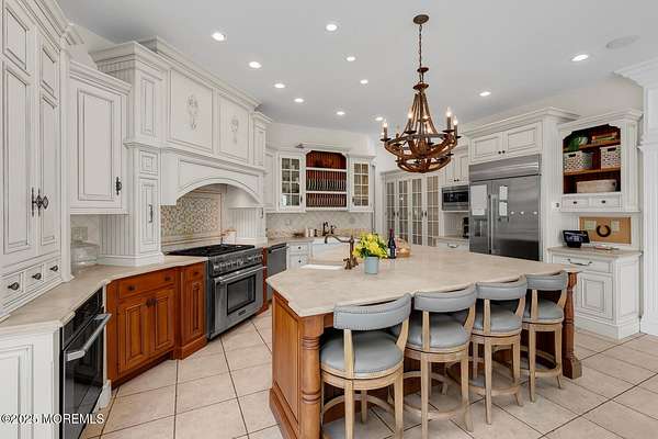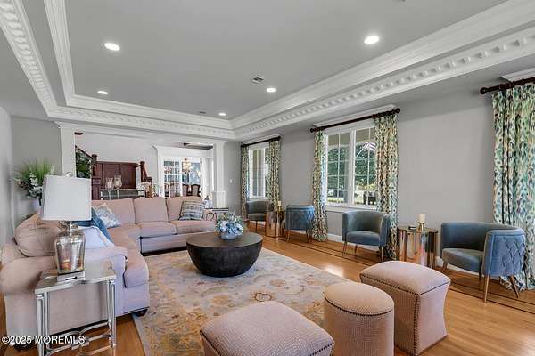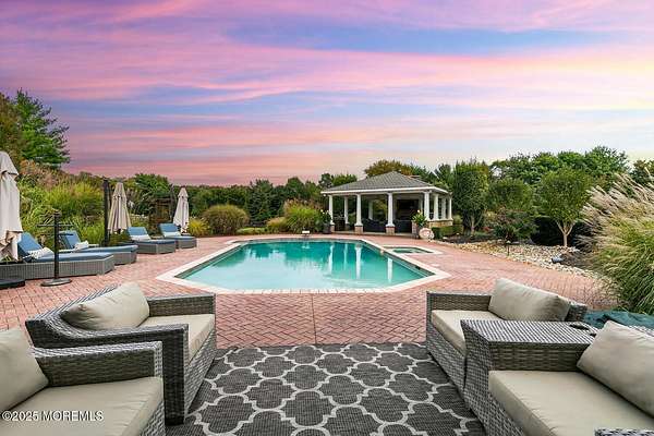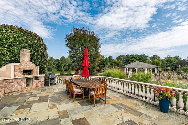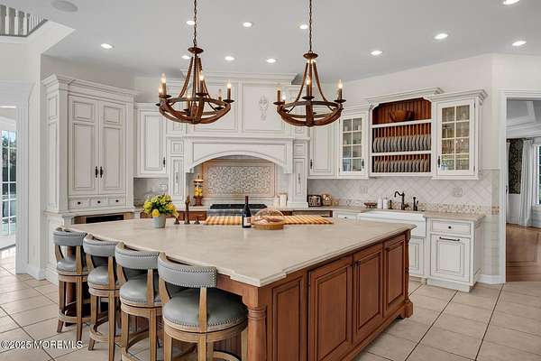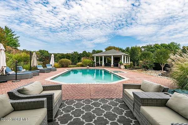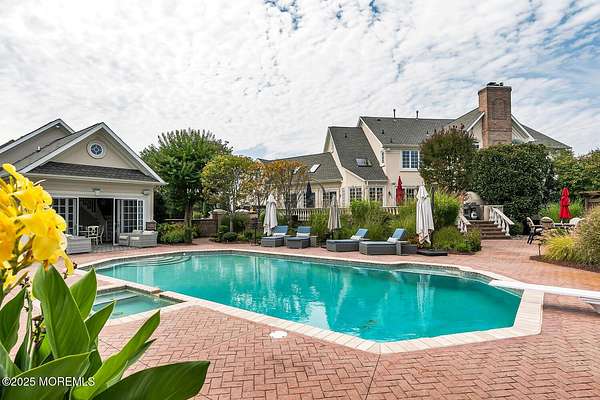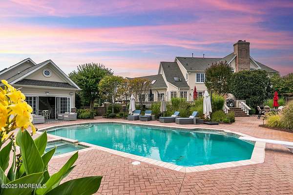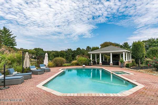 For the most discerning buyer, this custom-built estate is a true showpiece. Every detail has been thoughtfully curated--from the striking architectural design to the finest materials and craftsmanship throughout The home features rich hardwood floors, imported stone, granite countertops, intricate moldings, radiant heat, arched doorways, and three fireplaces. Additional highlights include a wine cellar, home theater, sauna, and a beautifully appointed pool house. A grand entrance begins with stunning double mahogany doors, leading into a warm and inviting interior. The gourmet eat-in kitchen is a chef's dream, complete with stainless steel appliances, a 6-burner Thermador stove, and a farmhouse sink. The family room, anchored by a wood-burning fireplace and custom built-ins, offers the perfect space to unwind, while the elegant study with a coffered mahogany ceiling makes working from home both comfortable and refined. Each bedroom is spacious and filled with natural light, featuring walk-in closets and unique design elements--including one with a hand-blown Murano glass chandelier, domed ceiling, and private balcony. The primary suite is a private retreat, offering a sitting area with a fireplace and a versatile loft ideal for a nursery or reading space. The spa-like bath showcases an onyx steam shower, marble floors, dual vanities, custom cabinetry, and a whirlpool tub. The finished basement is designed for entertaining, featuring a home theater, wet bar, wine cellar, sauna, and fitness room. Outdoors, the lifestyle continues with a full-scale entertaining area--complete with a fireplace, pizza oven, bluestone patio, and a sparkling in-ground saltwater pool. A guest/pool house with its own bedroom, bathroom, and kitchen completes this exceptional offering. A true home for the connoisseur of fine living.