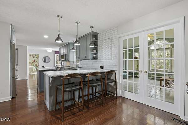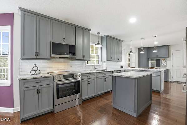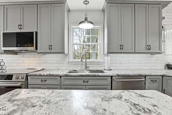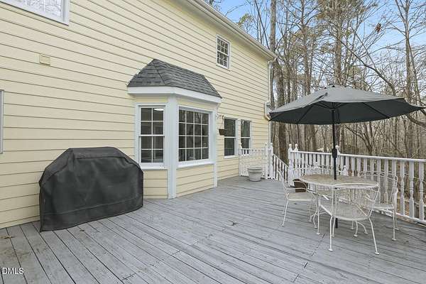 Private wooded retreat on 4.49 acres. In excellent location! This charming home blends nature with thoughtful updates. The main level features a large family room with wood-burning, stacked stone fireplace. Main level primary suite, large full bath with garden tub and separate shower. Wood flooring throughout, a cozy sunroom heated and cooled. The beautiful kitchen shines with thoughtful colors, quality cabinets, kitchen island, leathered granite countertop, and subway tile backsplash. 2nd floor has 3 bedrooms, a bonus room, laundry chute, and lots of storage areas. House features a central vac and LED lighting throughout. Recently renovated. Relax in the cozy sunroom or entertain on the expansive deck, surrounded by mature woods. Just off Hwy 64! Enjoy low county taxes and convenient access to Fearington Village, Jordan Lake boat ramp, Haw River Canoe launch and trailheads, Chatham Park/Mosaic, and countless shopping, dining, and entertainment options. In desirable Chatham County. Experience the peace and privacy of country living with modern convenience--this property has it all!
