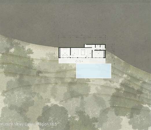This architecturally significant Catskills property offers premium modern living. The distinctive 3,000 square foot residence, designed by Mapos Architects, features a sustainable green roof and strategically nestles into the landscape to provide privacy from the approach while maximizing views on the downhill side. The main home design is conceived as an elegant bar nestled into the landscape, complemented by a charming screen porch ideal for summer evenings and al fresco dining. Adjacent to the main house, a detached guest suite offers privacy and comfort for visitors. The upper level showcases an open-concept main living area with abundant natural light and direct access to an expansive deck . The primary suite occupies a prime position at the end of the home, featuring its own private deck. The lower level includes a versatile family room ideal for entertaining or conversion to a home gym, two additional bedrooms, and a full bathroom. Triple-pane sliding glass doors open directly to the pool deck, creating a seamless indoor-outdoor living experience. Vly House represents a rare opportunity to own a contemporary architectural gem that balances sophisticated design with practical luxury in one of the Catskills' most desirable locations, just two hours from New York City.
