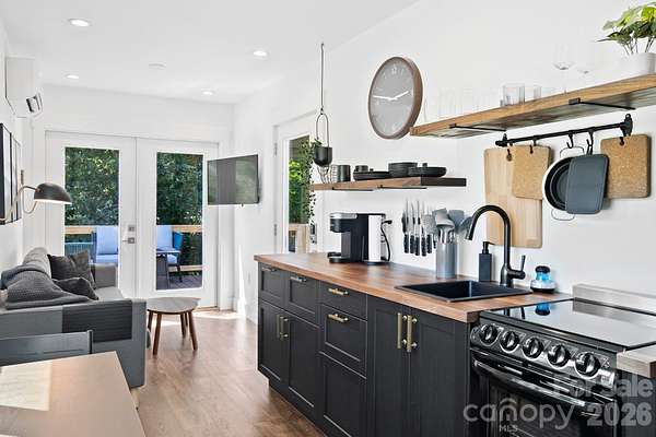 Own a rare modern container retreat just minutes from Asheville-with this tiny home, Pearl (10) and Onyx (8), available individually ($299,000 each) or together ($595,000) for a unique lifestyle or investment opportunity. Onyx Container Home offers a thoughtfully designed modern retreat that blends contemporary style with low-maintenance living. This stylish tiny home features a comfortable queen bedroom, a sleek and efficient kitchen with all the essentials, and a beautifully maintained full bath. Outdoor living is a highlight, with a spacious main deck ideal for relaxing or entertaining, plus a private deck off the bedroom-perfect for morning coffee or evening stargazing. The intentional design and inviting atmosphere create a distinctive experience that appeals to both homeowners and short-term rental guests alike. Pearl is one of two container homes available on separate parcels-Pearl and Onyx. Each property may be purchased individually or together, offering flexibility for buyers seeking a private mountain getaway, an income-producing short-term rental, or the opportunity to expand a portfolio with two complementary properties in a desirable location. Whether used as a personal retreat or investment property, this unique container home provides a memorable stay experience just minutes from everything Asheville has to offer-renowned dining, vibrant arts, and endless outdoor adventure.