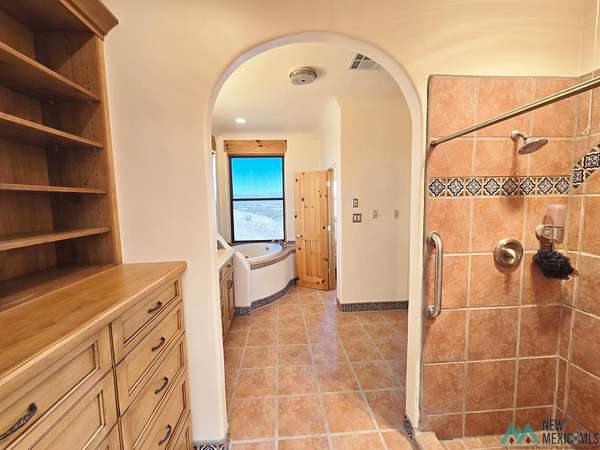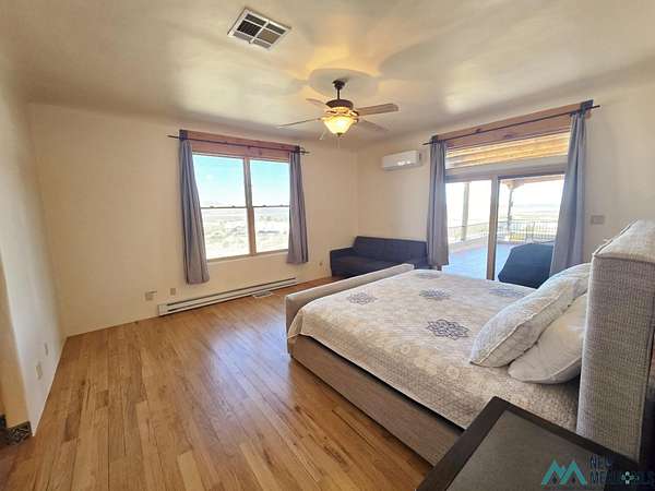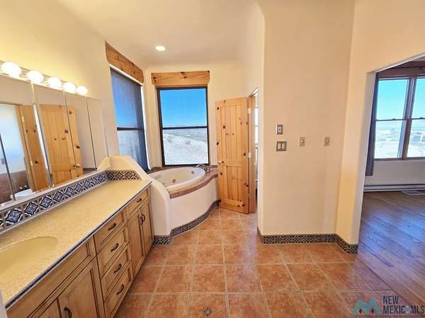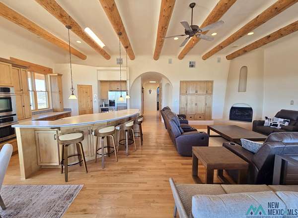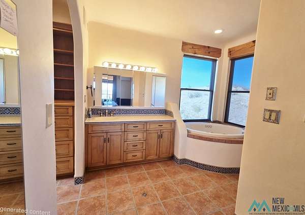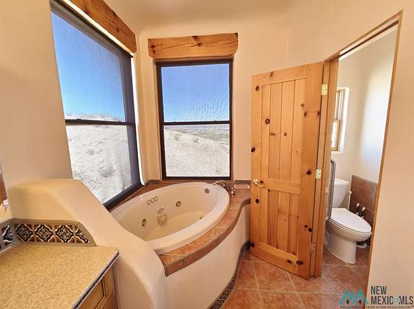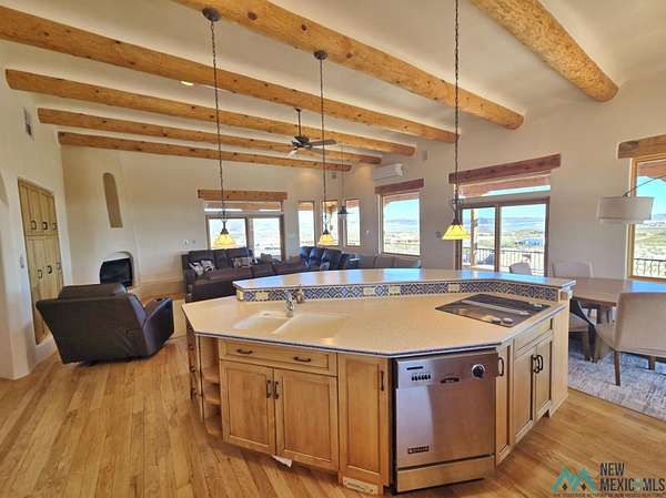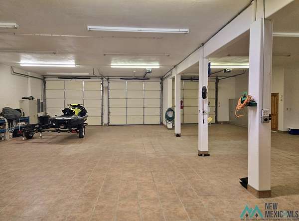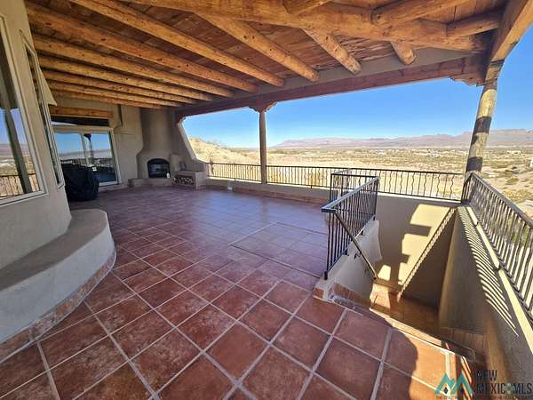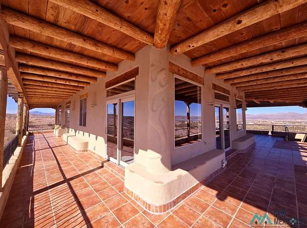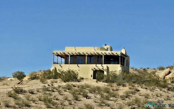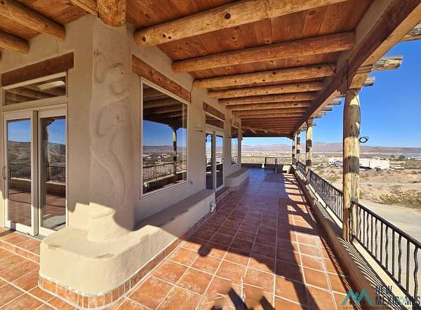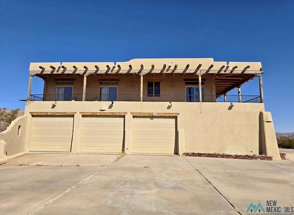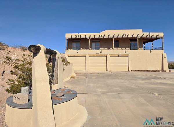 Gorgeous Pueblo-Style Estate on Nearly 14 Acres! Welcome to this stunning pueblo-style home perched near one of the highest points in Lakeshore Highlands, offering breathtaking views of the surrounding mountains and beautiful Elephant Butte Lake. This grand estate features 3 bedrooms, 3 bathrooms, and a central vacuum system for added convenience. Car enthusiasts and hobbyists will love the massive 55' x 61' drive-through 6-car garage, complete with a workshop and bathroom. Inside, the home showcases beautiful wood floors, tile flooring in the baths, and classic wood vigas, creating authentic Southwestern charm. The spacious, open kitchen flows seamlessly into the family room, where large windows flood the home with natural light and frame spectacular panoramic views. Step outside and enjoy the incredible outdoor living spaces, including a cozy outdoor fireplace and a three-sided covered porticoperfect for relaxing during cool evenings or taking in the spectacular sunrises and sunsets over the lake and mountains. Situated on nearly 14 acres at the end of a quiet cul-de-sac, this property offers privacy, space, and unmatched scenery in every direction. A true dream home combining comfort, Southwestern style, and breathtaking surroundings. Dont miss this rare opportunity!