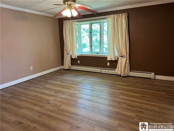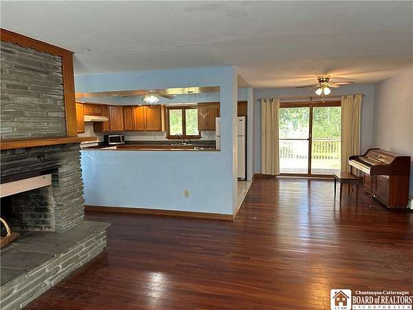 Welcome to 8 Highland Dr in Dryden, NY. As you pull into the concrete driveway, you're greeted by a charming home set on 2.6 acres with a partially wooded front yard that adds just the right amount of privacy. The two-car garage offers plenty of space for vehicles and storage, and as you step up to the front door, the peaceful setting begins to shine. Inside, you're welcomed by warm wood flooring that flows throughout the main living areas, creating a cozy, cohesive feel. Off to one side, the spacious living room features a wood-burning fireplace-perfect for chilly evenings-and flows seamlessly into the dining area. Just beyond, the kitchen offers tiled floors, a gas stove with overhead exhaust, and a passthrough that keeps you connected to the living and dining spaces while cooking. As you explore further, you'll find four bedrooms, all with plentiful closet space. The master bedroom is a standout, complete with a walk-in closet and a private bathroom featuring a standing shower and a luxurious jacuzzi tub-your personal retreat after a long day. This home conveniently offer first floor laundry and an oversized mudroom off the garage. Step out the back door and onto a large deck overlooking the scenic backyard. Whether you're sipping morning coffee or hosting a summer gathering, the views and space make it easy to unwind and enjoy nature. From front to back, this home in Dryden offers comfort, space, and peaceful surroundings-ready for you to move in and make it your own.