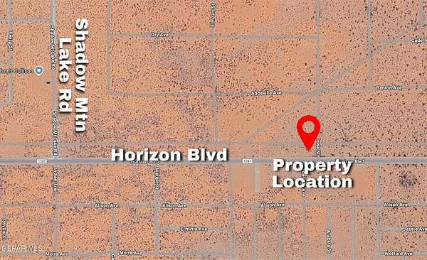 Est $329/moNearly 1 Acre lot is right next to a brand new electric station and a water line going in on Horizon Blvd. Invest now as the prices increase in this area! Boundary lines in photos are approximate. Address per county is HORIZON BLVD CLINT, TX 79928. Survey availalbe!