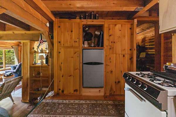 Rare opportunity to own 9 acres on an island in the middle of Cobbosseecontee Lake! This two bedroom, one bathroom home has been meticulously cared for and in the same family since its construction in the 90's . Tucked away with incredible privacy of maintained tree growth at the front, allows for viewing of the lake without recreational lake life viewing up at the cottage. The home has its own septic and leach field, outfitted with a complete solar array that operates separately from winter to summer, for comfortable off-grid seasonal living. Sizable kitchen allows for cooking with ease, electric refrigerator, gas range, and plenty of kitchen storage to aid in long stays without having to make frequent trips to either Augusta or Winthrop for groceries (approximately 20-25 min boat and car). There is a main floor bedroom with a sleeping loft up above. There is an opportunity to expand upon the loft space bedroom for additional storage above the main floor bedroom. The property is part of the Horseshoe Island Association, and there is assigned parking on the mainland with a storage locker and boat parking on the association dock. The pontoon boat and an additional aluminum boat will convey with the property. The property additionally will come with the two docks on the island. One main dock is currently out and in use for showings.