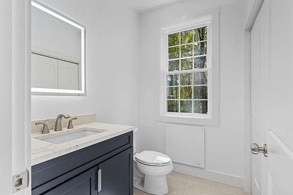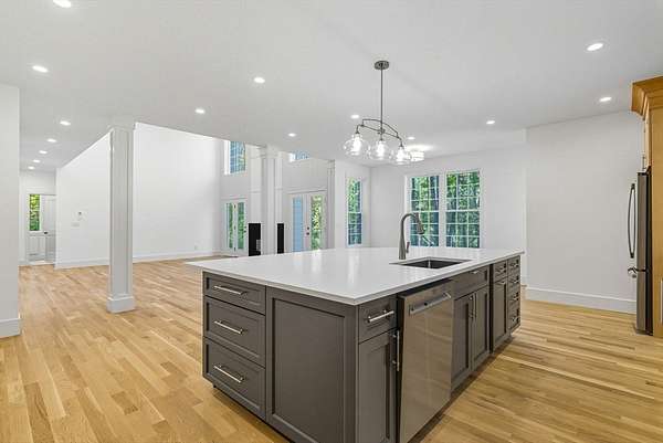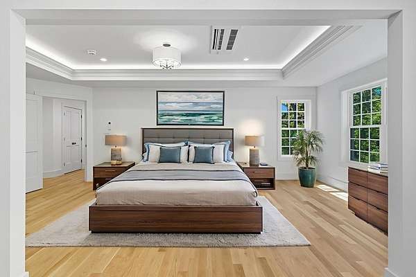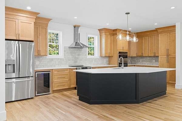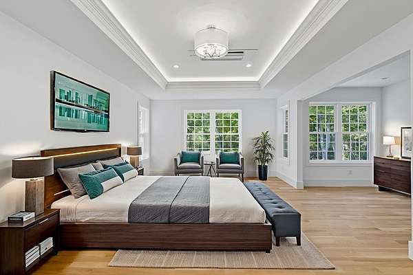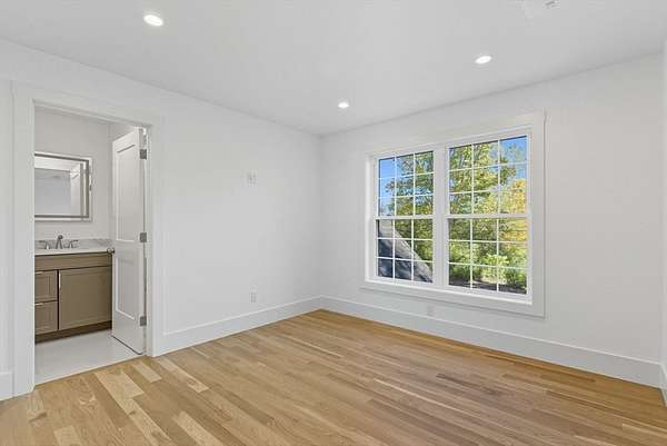 Crafted with precision and style, this brand-new home offers the ultimate in modern luxury. A true architectural masterpiece, this newly built residence showcases refined design and extraordinary detail. Highlights include an open-concept floor plan with abundant natural light, a bespoke kitchen designed by Prestige Kitchens in Needham, and a dramatic lighted staircase that is the centerpiece contemporary style. This exceptional home blends traditional flow with high-end design. The luxurious primary suite provides the perfect retreat with its spa-inspired primary bath and quiet sitting area. Completing the second level is the additional en-suite bed/bath, and hallway bathroom flanked by two bedrooms with double windows and ample closet spaces. The custom deck provides the perfect spot for morning coffee or private entertaining. The full walkout basement allows for the potential of an additional level of living space. Complete sophistication and elegance. A showstopper!