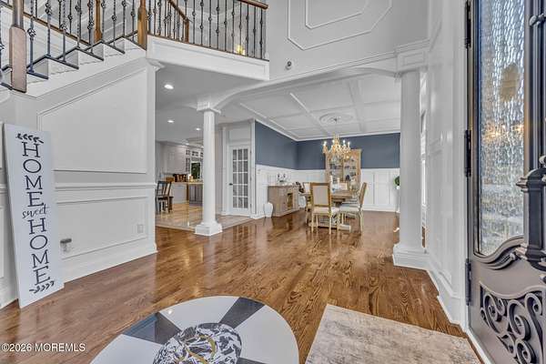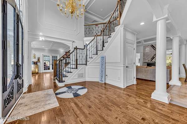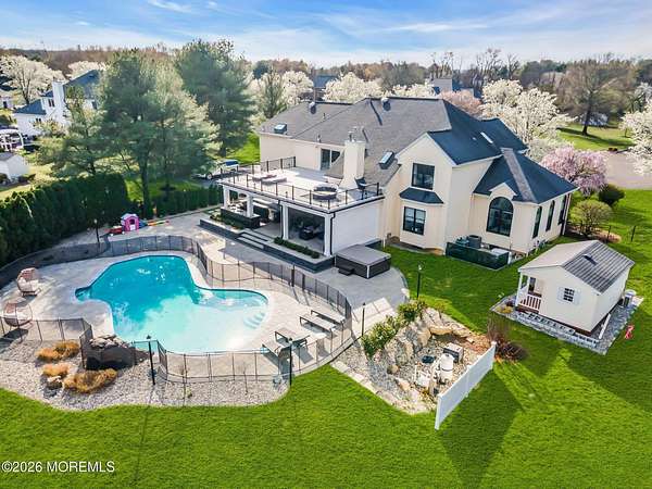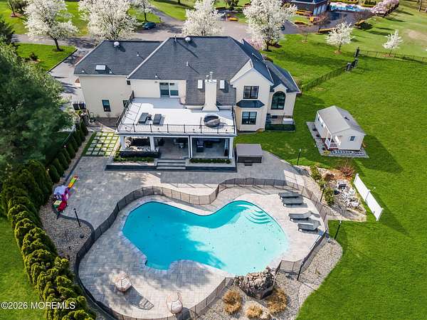 The absolute best deal to hit the Manalapan market this year, Absolutely stunning custom built Woods Edge development colonial situated on an end of cul-de-sac premium just under 2 acre lot. Owners have spared absolutely no expense in outfitting this home with the finest of finishes and fully renovating everything in the last 4 years. Home features 5 bedrooms with 4 full bathrooms along with a gorgeous open floor plan with over 4300 sq ft main levels. Soaring ceilings with brand new flooring and trim along with a designer chef's kitchen featuring high end appliances along with stone work that you do not get to see in this type of budget. Detailed and upgraded cabinetry along with spacious bedrooms upstairs featuring a gorgeous Primary suite that just had a massive balcony addition put on as well. The entire yard has just been finished by one of the best in the business "Elite Landscapes" and it truly is a showstopper. Incredible resort style pool with waterfalls and custom pavers along with a cabana style build out off of the home that features a kitchen and private entertainment space that will surely amaze. Shed also perfect hang out space. This is an entertainers dream home. Located in one of the best school districts in the state and fantastic commuter location do not miss out on this beauty today!