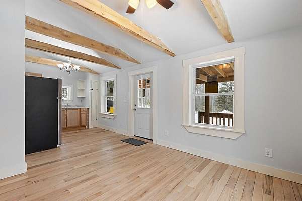 Have you been looking for an easily maintained spot to crash after long ATV trips with ITS trail access right at your doorstep? Maybe you are a hunter looking for an abundance of wildlife in your backyard? Or perhaps you are someone who craves quiet, peaceful off the grid type living with the convenience of civilization nearby? This cozy year-round 2 bed, 1 bath ranch style home offers all of this and more! With a blend of hemlock, cedar and solid oak, all of the wood has been sourced from the local Maine landscape and milled specifically for this project. You will own a discontinued road that runs along the right side of the 6.38 acre parcel, making exploring a breeze. A gorgeous farmer's porch is the perfect spot to unwind after a long day or move to the back deck where an abundance of natural sunlight provides the perfect opportunity for solar if desired. Exposed beams, new appliances including tankless hot water heater and a whole house water filter plus a brand new propane monitor are a few of the additional bonuses you'll be sure to love about this affordable home. Come enjoy all of the area recreational activities or just soak in the tranquility of rural living!