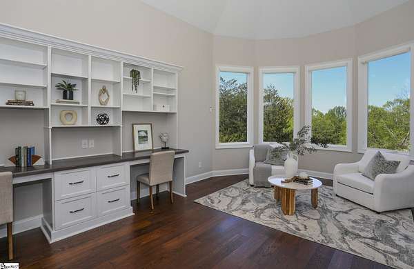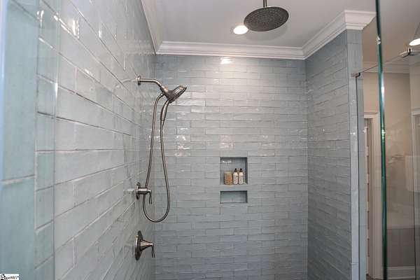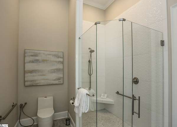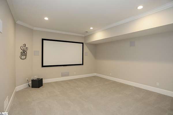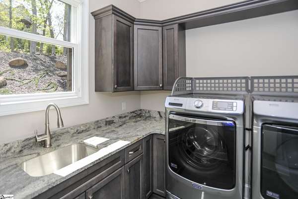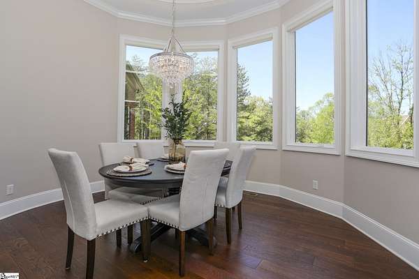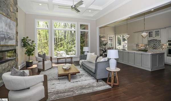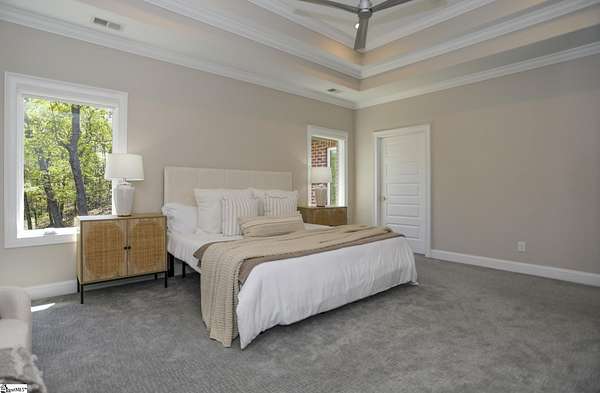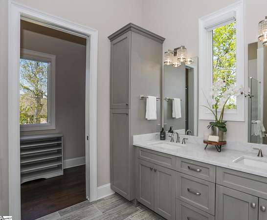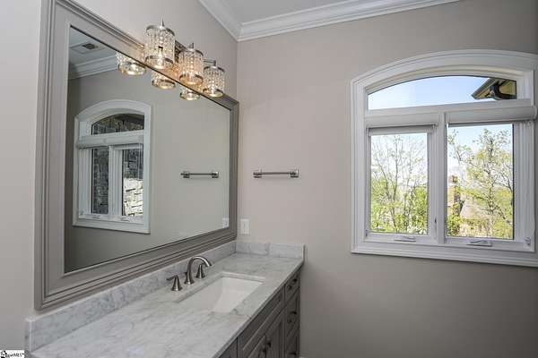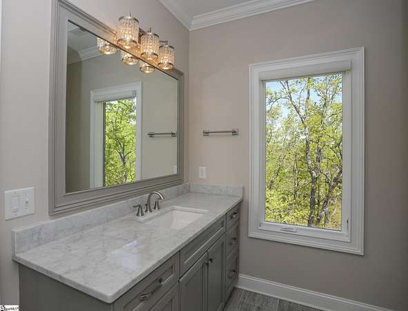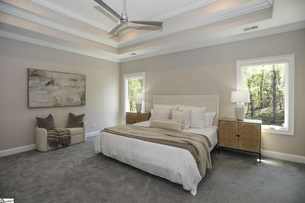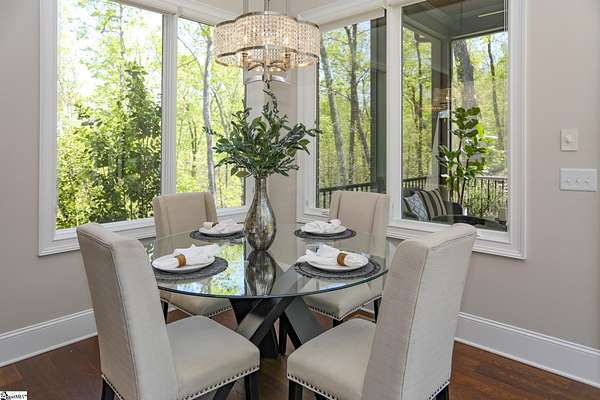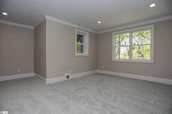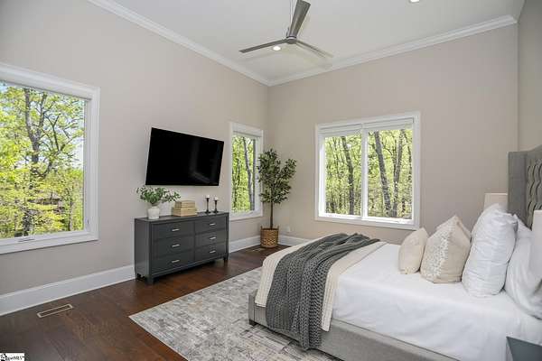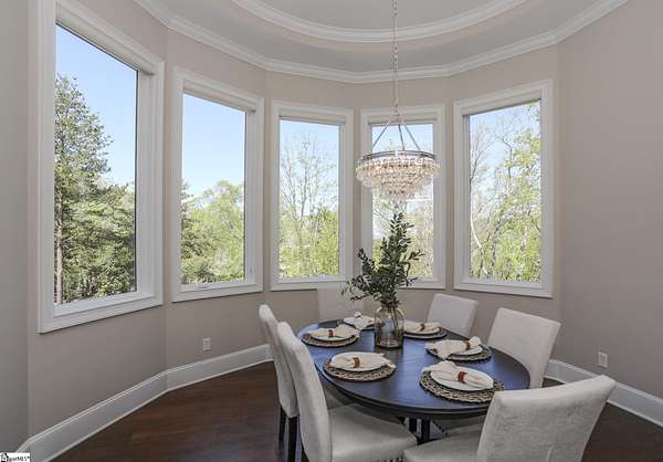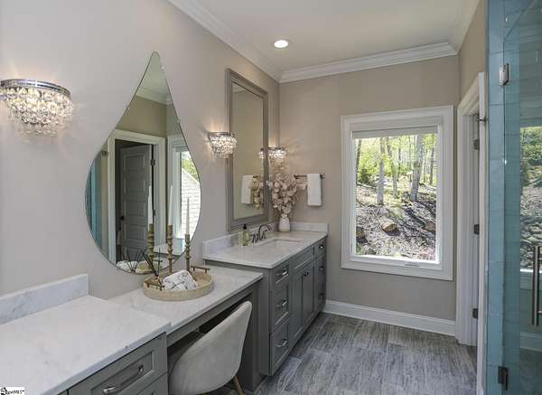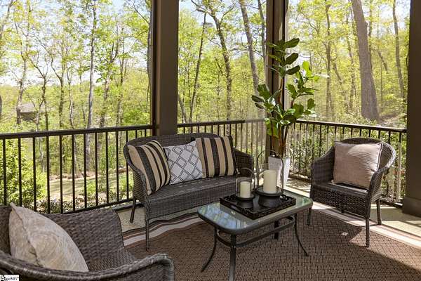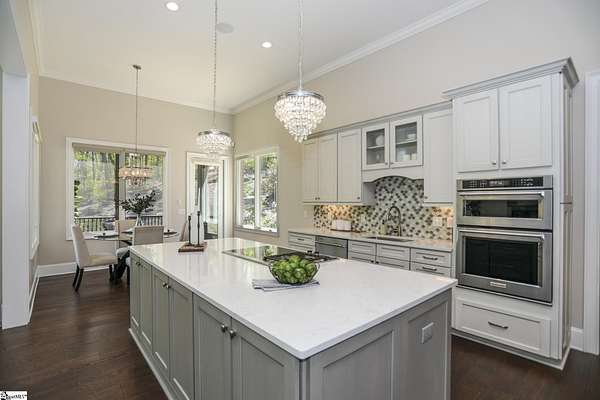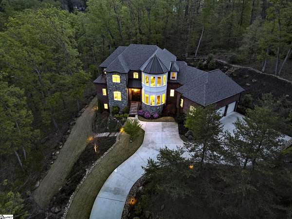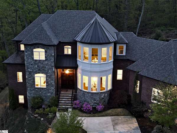 Experience unparalleled luxury just 10 minutes from downtown Greenville!! Nestled in Greenville’s premier gated community, Montebello, this European - inspired mountain estate is set against the western slopes of the Piney mountain in a 1.8 acre lot, one of the largest in the subdivision. This gorgeous home is designed and built by Milestone Custom Builders, Greenville’s premier custom home builder with over 25 years’ experience, for those who value elegance, comfort and functionality. This exquisite homesite compliments Montebello’s natural beauty, with a classic and eclectic home feature exteriors of brick, stone and real stucco. Enter through the front porch with flagstone floor and begin exploring the main level’s incredible craftsmanship and its masterfully arranged layout. An open concept plan with 12 ft. ceiling throughout the main level, resorts style living room with coffered ceiling and floor to ceiling windows flood the home with natural light. The expansive great room features an electric fireplace surrounded by gorgeous stone on three sides that soars all the way to the ceiling and wide plank flooring. Just off the foyer and conveniently located near the kitchen and great room, the large circular formal dining room features a coffered ceiling and a gorgeous light fixture.The gourmet chef kitchen boasts top of the line wolf range, bespoke cabinetry, and oversized quartz island, perfect for entertaining. The covered porch is perfectly located to enjoy over the private back yard and features wooden ceiling and safety net with railing and a double door to the backyard. On the opposite side of the house from the kitchen are the downstairs master bedroom unit and a study with natural light and mountain views. Rounding out the main level is the laundry room with Iron-a-way built-in wall table, the powder room, and the attached 3 car garage with epoxy flooring. On the second level the upstairs master suite with spa-like bath is gorgeous with frameless shower glass, beautiful large teardrop vanity mirror, large overhead shower and beautiful vintage tile walls. There is a large library and lounge area with built-in shelves, two bedrooms with attached bathrooms ensuring plenty of privacy and breathtaking views of the blue ridge mountains from each room. There is also a walk-in attic area on the second level for any storage needs. The basement level offers many options and is finished to the same standard as the second level with 10 ft. ceilings. There is a gym room with full-size wall mirrors and a game room with specialized rubber flooring. There is also a full size media room with built in projector and a large home theater screen. This level also has a bedroom with excellent views and a full bath. The gym room has backyard access through double doors to the natural trail behind the landscaped area of the property. There is also plenty of unfinished area for storage or a private wine cellar. The basement area would make a great mother-in-law suite, a private home office, an older child’s living quarters, home gym, artist studio…the possibilities are endless. The house has spray foam insulation to decrease energy consumption, modern gutter downspouts and separate air conditioning units for each level. The professional crafted boulder stone landscaping with the lush gardens create an unbelievable serene outdoor retreat with a scenic drive and a separate parking pad in front of the house. This modern masterpiece showcases clean lines, soaring ceilings and a seamless blend of indoor and outdoor living designed to impress even the most sophisticated tastes. Homeowners share a variety of natural amenities including Club Bella, six parks, ponds, Lake Como, Olympic swimming and toddler pools with a bath house, lighted tennis and pickle-ball courts, putting green, playground and sixty areas of green ways and twelve miles of private streets and walkways. This is an unbelievable opportunity to own this one of a kind estate!