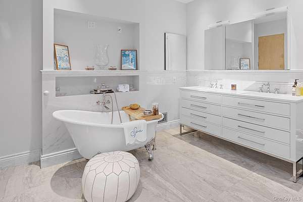 Set on 9 private acres along Mill Neck Creek, 8 Mill Pond Lane in Lattingtown is a rare waterfront sanctuary that blends bold contemporary architecture with natural serenity. Enjoy sunrise and sunset views, elevated lawns with sweeping vistas to the water's edge, and a layout ideal for year-round indoor and outdoor living in the Locust Valley School District. As you enter this recently renovated home you are greeted with soaring 25-foot great room with a sculptural fireplace and walls of glass anchors the airy interior, bathing the space in natural light. The chef's kitchen, flanked by dual butler pantries, flows seamlessly from casual to formal dining areas and extends effortlessly to the outdoor entertaining spaces. The first-floor primary suite features vaulted ceilings, a stone-clad fireplace, and a spa-like bath. On the second level, two guest wings, a library, and a second living room offer flexibility and privacy-each with its own water view. Outdoor amenities include a heated gunite saltwater pool with spa, a four-season entertaining area, shoreline access for kayaks, and unmatched seclusion, all while sailboats drift by-yet you're just minutes from NYC. A finished basement, three-car garage, and walkable beach access complete this exceptional one of a kind setting. Waterfront living at its finest!