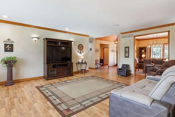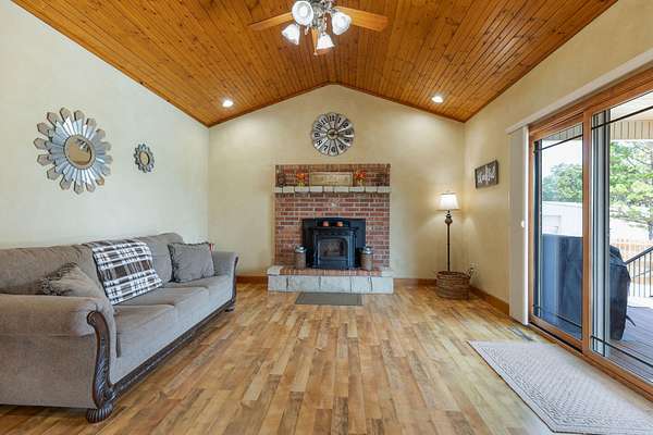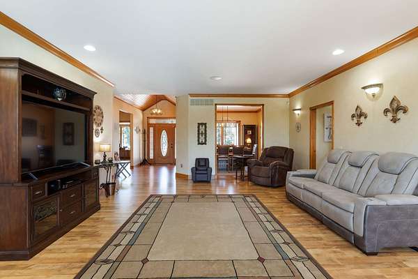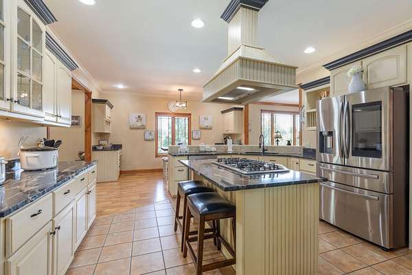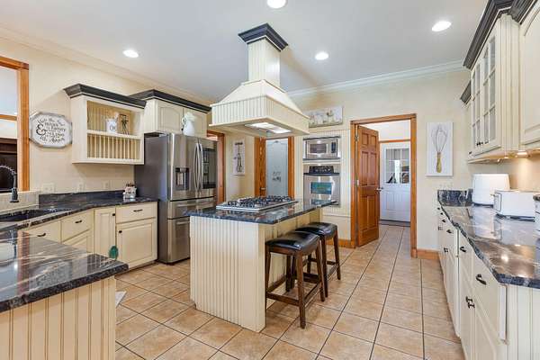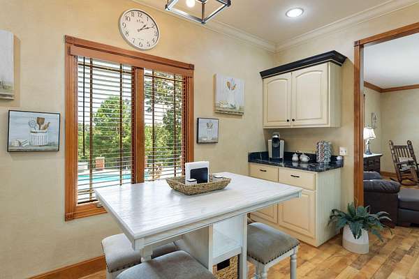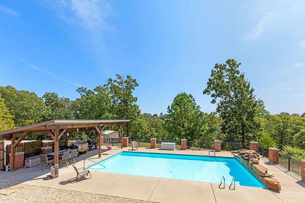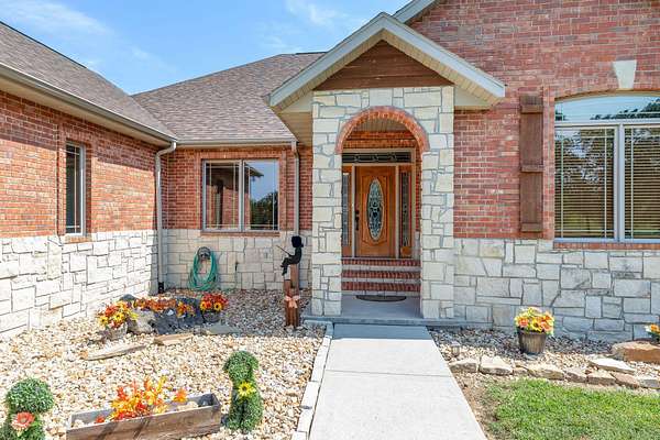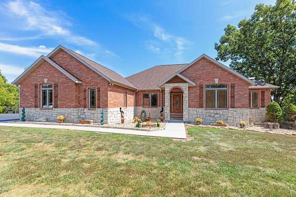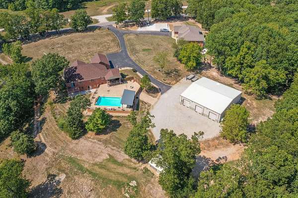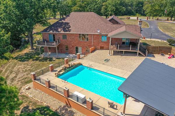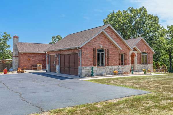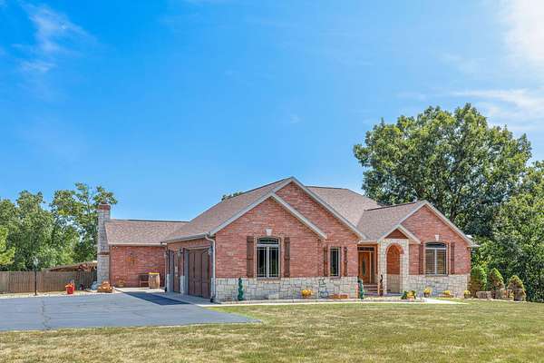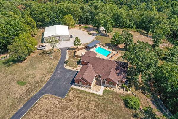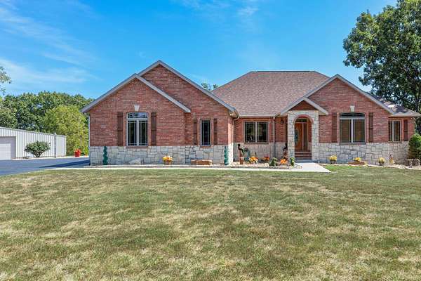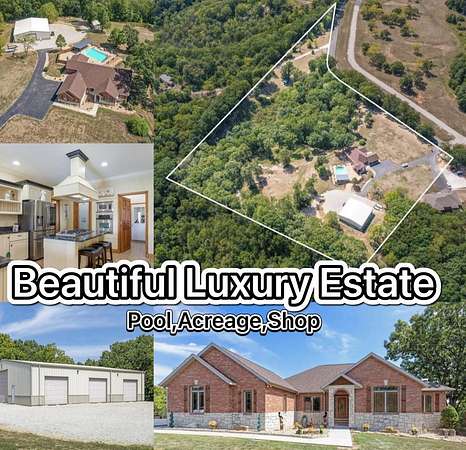 Discover this beautifully planned 9.41-acre estate, offering the perfect balance of luxury, comfort, and functionality. The 5-bedroom, 3.5-bath main residence showcases timeless all-brick and stone construction with an attached 3-car garage. Inside, the great room welcomes you with a tongue-and-groove vaulted ceiling and a cozy brick fireplace, while hardwood flooring, granite finishes, and custom accents create warmth and style throughout. The chef's kitchen is designed for entertaining, featuring a wall oven, propane cooktop, granite countertops, pantry, coffee bar, and both casual dine-in and formal dining areas. The spa-inspired owner's suite includes a soaking tub, walk-in shower, dual sinks, and a spacious walk-in closet. Additional highlights include a formal office with built-ins, multiple living spaces with two options for mother-in-law quarters, and a lower-level family/game room complete with a second full kitchen and walkout access to the covered patio. Step outside to your private retreat with a 36x20 in-ground pool, a full-length 4-foot stone waterfall, and a 32-foot gazebo. Almost 10 acres that supports local wildlife, and a 12x20 chicken coop adds a touch of hobby farming charm.The property also features a 60x60 steel shop building with room for 5+ vehicles and a finished 1-bedroom, 1.5-bath apartment with a full kitchen--perfect for guests, extended family, or private living quarters. Built with quality in mind, this home offers R-30 insulation, 14'' I-joists, 2x6 basement walls, Windsor windows, solid wood doors, and a new heat pump. From resort-style amenities to thoughtful design, this estate offers endless opportunities for relaxation, entertainment, and multi-generational living. A rare and remarkable property built to be enjoyed for years to come.