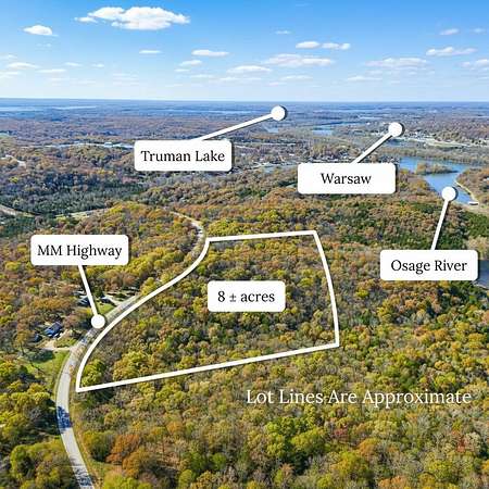 This 8 m/l-acre tract offers a great opportunity for a ready-to-use recreational or getaway property. The land features a grandfathered driveway approved by MoDOT, along with a power pole already approved for connection by the electric company--saving you time and upfront setup costs.An existing well, approximately 100 feet deep with 20 feet of head, is already in place, making this property especially well-suited for a camp or RV site. With the addition of a cistern and intermittent pump system, you'll have a practical and efficient water setup for weekend stays or extended use.Conveniently located just 7-8 minutes from downtown Warsaw, you'll have quick access to Drake Harbor public boat ramps, Walmart, and a variety of local shops and restaurants. Truman Lake beaches and boat ramps are also only about 10 minutes away, giving you easy access to fishing, boating, and outdoor recreation.Whether you're looking for a private camping spot, a base for lake adventures, or a future homesite, this property offers both convenience and potential.