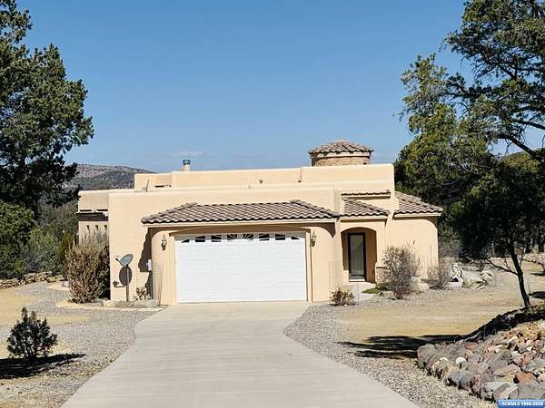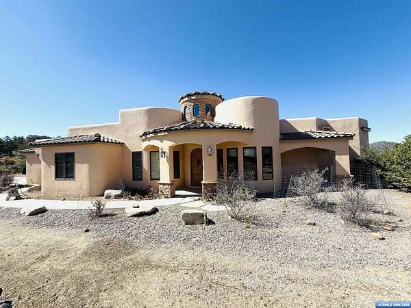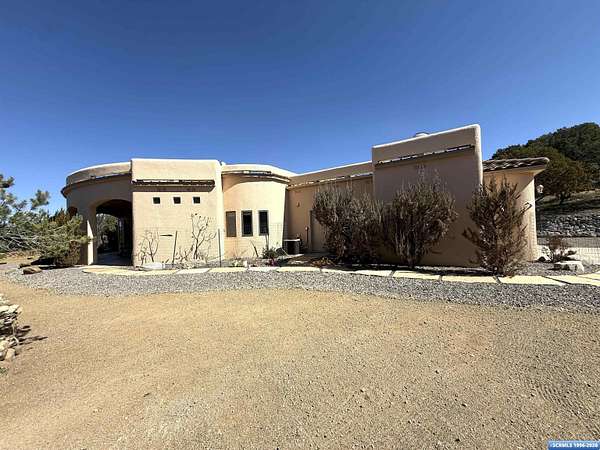 3 BD | 2 BA | plus office and 1.5+ ACRES. Escape to your private, custom Southwest retreat! This unique home offers incredible mountain views and a perfect balance of seclusion and convenience. Step inside to find soaring high ceilings, striking stone columns, and a cozy living room anchored by a traditional wood-burning Kiva fireplace. Features include a beautifully remodeled bathroom and two bedrooms with private exterior access. The authentic Southwest-style custom furniture conveys with the sale, making this a truly turnkey purchase. Don't miss this one-of-a-kind New Mexico experience!