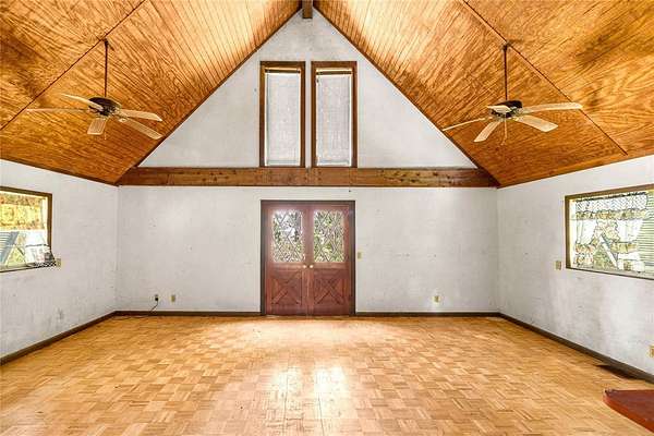 Bring your vision and creativity to this unique 3-bedroom, 1.5-bath home tucked away on 1.6 acres of peaceful, wooded land. This property is a true fixer-upper and ideal for an investor, flipper, or buyer looking to rehab and make it their own private retreat. The home features a striking A-frame style with soaring wood ceilings, an open floor plan, and plenty of natural light. The 2024 A/C provides a head start on updates, while the expansive property offers endless opportunities for outdoor living and gardening. With A1 zoning, this property could also be used as a mini farm, giving you flexibility to add animals or cultivate your own homestead lifestyle. Best of all, it's not in a flood zone, so you can renovate with peace of mind. Conveniently located yet surrounded by nature, this property offers privacy while still being close to town amenities. Don't miss your chance to transform this diamond in the rough into a beautiful home or a working mini farm. Schedule your private tour today!