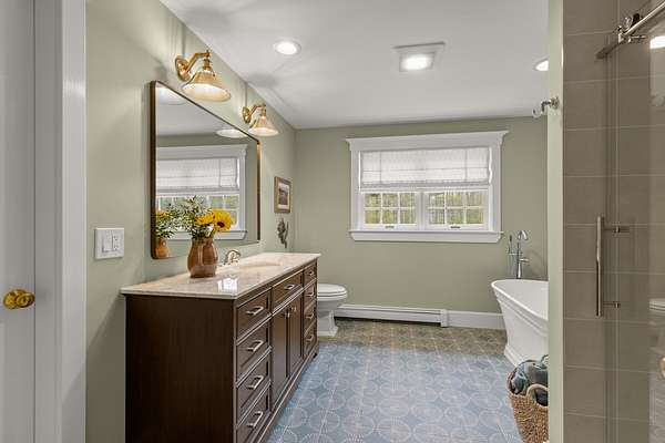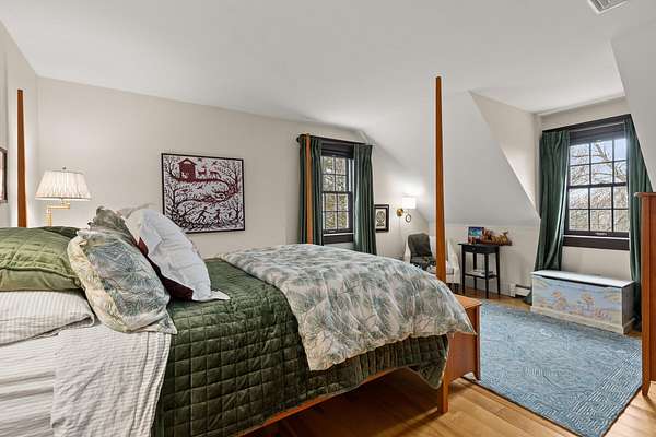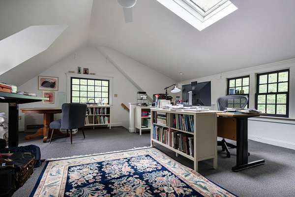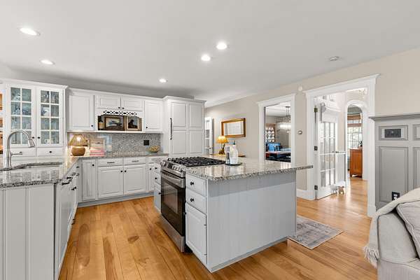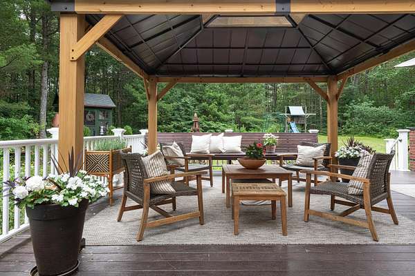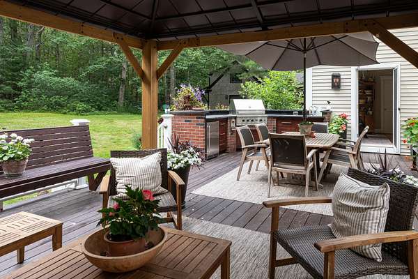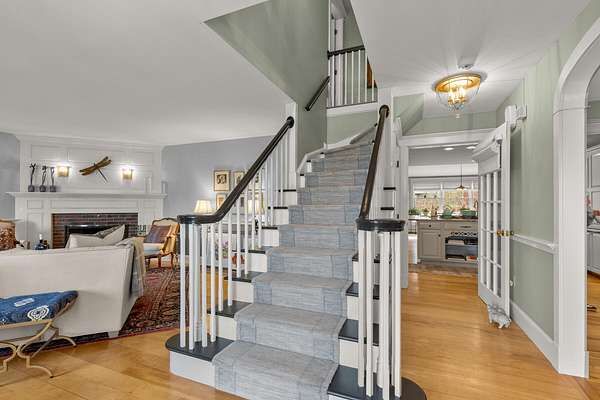 Perched gracefully on a verdant hillside, with views of Mount Agamenticus and the serene York River, this exquisite residence is designed for effortless, year-round entertaining. Built in 1991 and set upon 2 plus acres, it offers three bedrooms, a private guest suite, 3.5 bathrooms, and an additional garage offering office space above. Sustainable elegance is evident in the 2022-installed solar panels, while the secluded backyard beckons with a pergola, lush landscaping, and an outdoor kitchen. Encompassing 3882 square feet of impeccably finished living space, this home seamlessly blends timeless sophistication with modern convenience. Thoughtful enhancements abound, including a newly renovated primary bathroom, a walk-in pantry adjoining the kitchen, complete with integrated appliances, additional laundry facilities and bespoke cabinetry. Over the years, distinguished artisans such as EAD Woodwork have elevated the property with unparalleled craftsmanship, ensuring every detail exudes refinement. Meticulously maintained including a new heating system and thoughtfully conceived to foster comfort and conviviality, this traditional home promises an unparalleled lifestyle of grace and distinction. Its enviable location places you steps from the prestigious York Golf and Tennis Club, the charming York Village, the esteemed Marshall Gallery, and the iconic Wiggly Bridge. A leisurely five-minute drive--or a picturesque stroll along the Fisherman's Walk--leads to the pristine sands of York Harbor Beach.