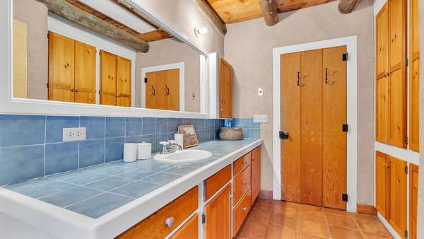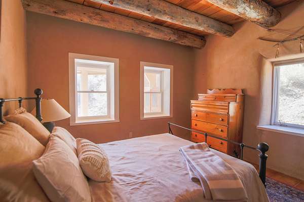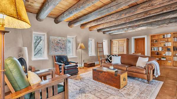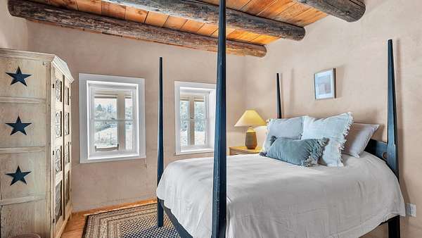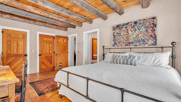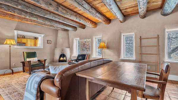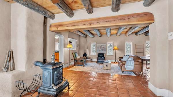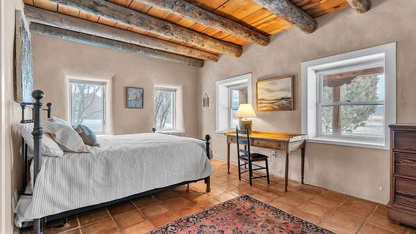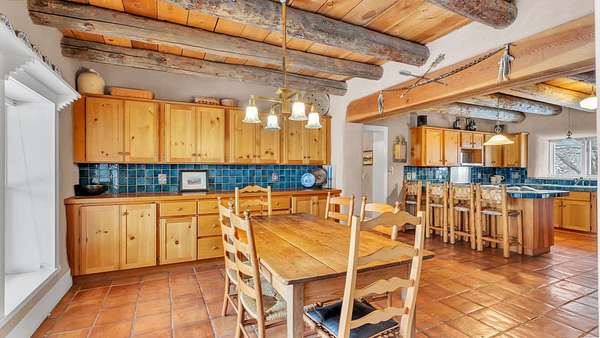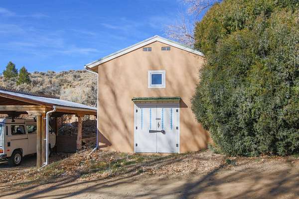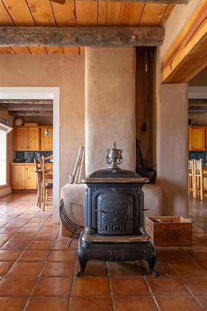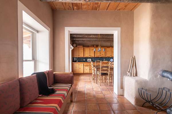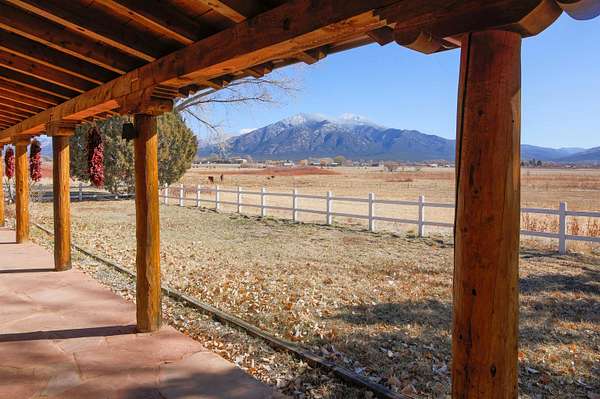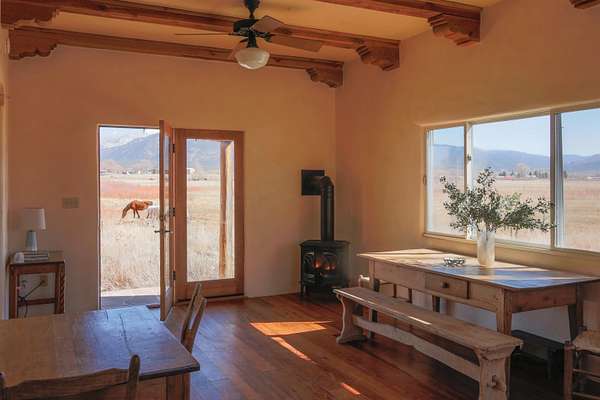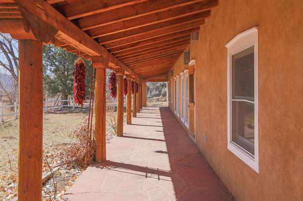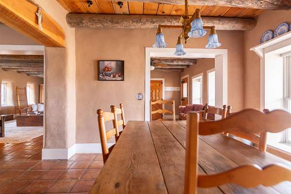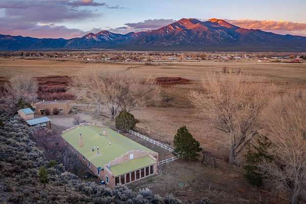 Magic Exists in El Prado, New Mexico ~ Actual magic exists right here in the Land of Enchantment privately tucked away at the end of a quiet road in coveted El Prado, just minutes from Taos Plaza, the Rio Grande river, and Taos Ski Valley. Upon your first experience at this true storybook residence, your jaw will drop and your eyes will light up as you become captivated by some of the most stunning and immersive views of our breathtaking mountain range beyond lush, grassy, and red willow filled meadows. El Prado, which translates to "the meadow" in Spanish, is a very special region here in the sacred valley first occupied by the Tiwa, or Red Willow People, who also happen to be the direct neighbors on the adjacent property which is a privilege of its own; it is a pure joy getting to regularly observe majestic galloping horses, with Wheeler Peak and El Salto as a back-drop while Spring water flows in the acequia waterways through these 6.5 acres. As for the home and guest home located on the land, the magic only continues with a remarkable and traditional 4 bed 2 bath adobe territorial, and separate 1 bed 1 bath cottage inspired guest home. After parking under the extra tall pergola ideal for recreational vehicles you will be enamored by an impressive 80ft long covered flagstone portal (porch) with NM red chile ristras hanging from hand carved beams & corbels. To the left, a contained front yard with a white picket fence, the acequia, and elevated views of Pueblo Peak. To the right, a peaceful entryway through a hand carved door and screen door into a brightly lit foyer where you are greeted by an antique Glenwood Parlor wood stove, and more elegant custom carved wood. All around you, classic Southwest finish-work from the radiant heated saltillo tile floors, up the traditional mud & straw plastered walls that are a foot and a half thick, a corner kiva fireplace with a bancito, up to the un-carved viga, beam, and wood plank ceilings, it is if you're taking a subtle step back in to time, yet with all the modern luxuries. The flow and fengshui of the split-floor plan couldn't be more perfect with plenty of space in each of the rooms and adequate storage for all of one's belongings. The bedrooms themselves are well lit through numerous windows with classic white painted trimming, especially the primary bedroom which is quite the sanctuary. The kitchen and dining room contains vibrant indigo turquoise tile on the countertops up the backsplash, and is a place where tasteful memories will be created preparing and enjoying meals throughout the day with family & friends. The sunroom with floor to ceiling south-facing windows will be a popular place to bask in the sun, reading your favorite book, surrounded by your own indoor tomatoes. The immediate yard couldn't be a better place for pets and children to play, and the greater yard will serve as the perfect home for horses of your own, or any other animal that you hope to raise for that matter. The immediate guest home with tall ceilings, hardwood floors, and antique appliances is privately situated and strategically placed to absorb lots of natural sunlight throughout the day, and provides the same magical views as the rest of the residence. The storage rooms attached to the guest home will be perfect for keeping all of your recreational gear, or perhaps can be converted to more livable spaces, along with the third cottage style storage room beside the pergola. This amount of acreage also means enough space for a multi-family property to keep all the relatives close by. It's impossible to put into words the magic and all the wonderful potential of what 8 Painter Road can become, therefore you must come experience it all for yourself, Summer has just begun.