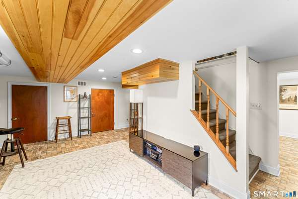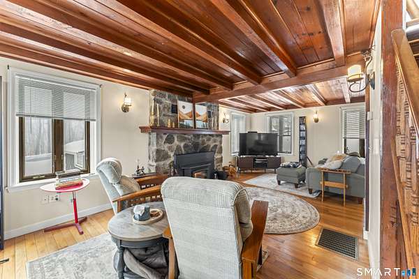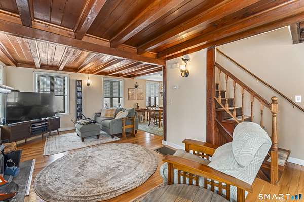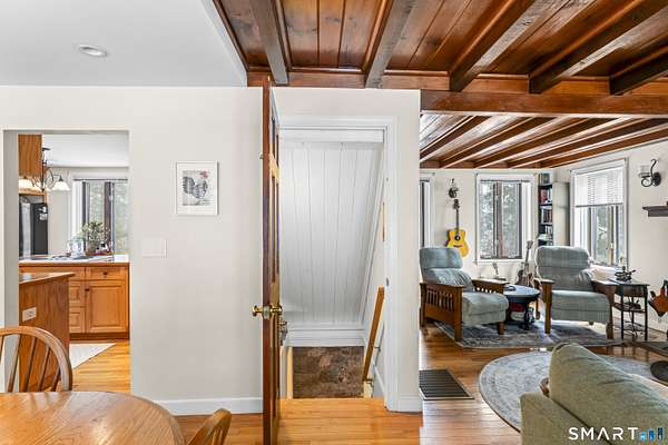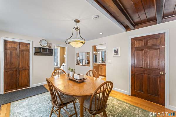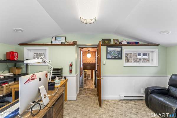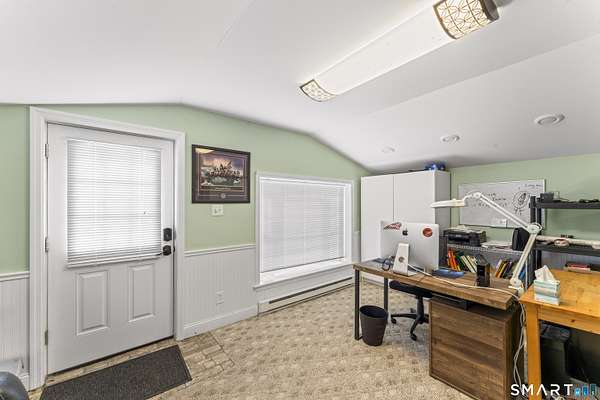 Welcome to 8 Perry Lane! This charming cape/cottage style home is set on a beautiful 1.5-acre property within a wonderful neighborhood. The floorplan boasts tremendous flexibility, granting a new owner both an open and flowing feel coupled with designated work and living spaces. The main level welcomes you with a bright and inviting eat-in kitchen-perfect for everyday meals or casual gatherings. A convenient half bath and laundry area add everyday practicality, while the open living and dining spaces create a warm, comfortable setting for relaxing or entertaining. Upstairs, you'll find a large primary bedroom and a second generously sized bedroom both featuring vaulted ceilings and skylights that fill the rooms with natural light and create a wonderful sense of space. A fresh full bath serves this level, completing a peaceful retreat. The lower level offers outstanding versatility with a flexible space great as a den or even a guest setup. With its own separate entrance, this level includes a spacious bedroom or office, a cozy family room, and an additional half batt. Outside, the property continues to impress. The grounds include an outbuilding with water and seller was told it's own septic system-offering tremendous potential for a workshop, studio, storage, or possible additional living space. With its flexible layout, generous property, and endless possibilities, this home offers a wonderful opportunity to create a space that truly fits your lifestyle