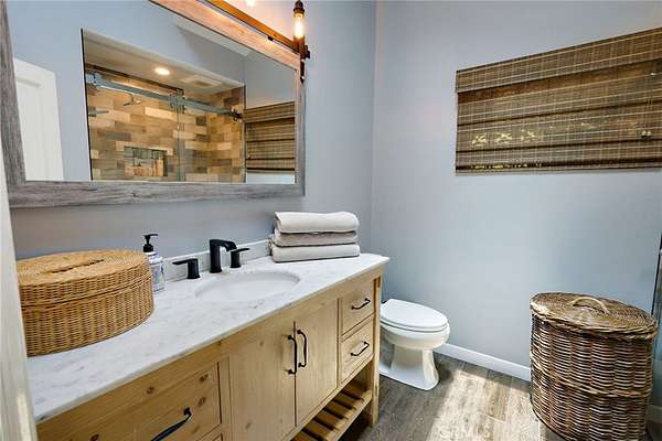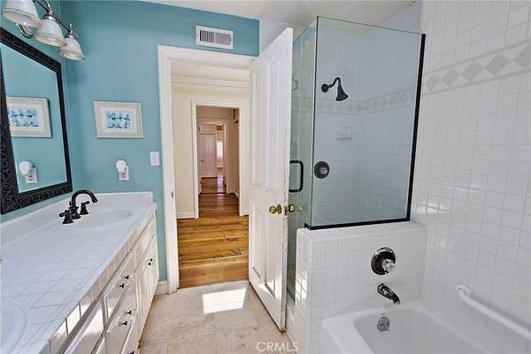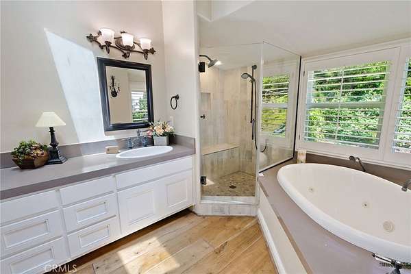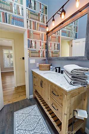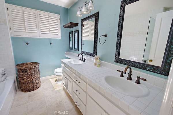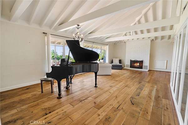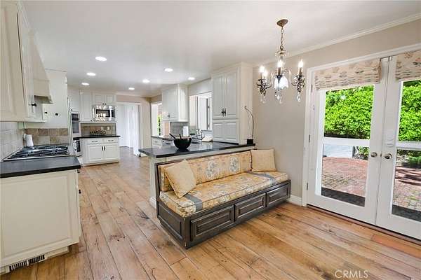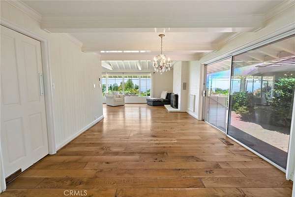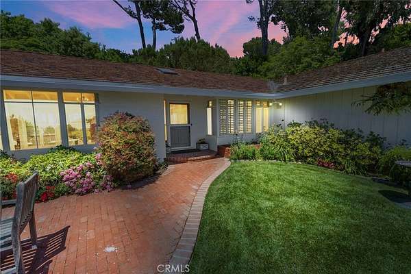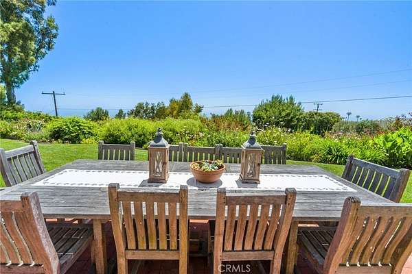 Nestled on a quiet street, this home exudes peace and beauty, from the established landscaping to the magnificent coastal Catalina views. Built in 1951, with over 3000 square feet of living space, this one level home features 4 Bedrooms, 3 renovated Bathrooms and beautiful rich wood floors throughout. The Country Kitchen has gourmet features and an attached casual dining area. The living room has large windows to take in the views, high beamed ceiling, brick fireplace and easy flow around to the dining area and family room. Custom shelving in both the living room and family room and another fireplace. The primary suite has its own cozy fireplace, gorgeous Catalina Views and a renovated spa like bathroom. There are large grassy yards and a very private back patio for entertaining options. One of the renovated bathrooms and offers direct access into a ground level shower. Several skylights help provide more natural light to the hallway and bathrooms. Two detached garages with outside storage. There is a future barn site on a pad above, with street access from another road. Currently there is a charming playhouse/chicken coop located there and abundant wildflowers enhance another spectacular view. There is a small basement with outside access which was used as an office but could be a wine cellar option. This tasteful and comfortable style of living is truly quintessential Rolling Hills. With miles of trails and spectacular views, pickleball and guarded access, make this a wonderful place to call home!