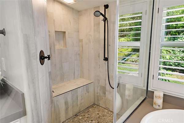 - Beamed Ceilings, Brick Walls, Built-In Features, Pull Down Stairs to Attic, Recessed Lighting, Sliding Doors, Stone Counters, Storage, Wood Frames Window Features
