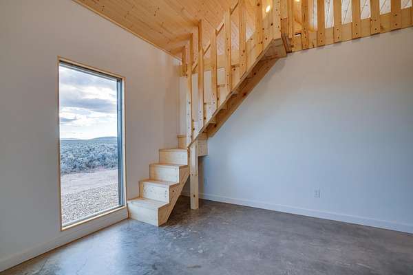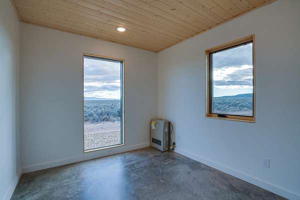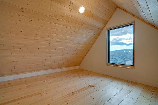 New-construction site-built house! 2-bed, 1-bath single-family home with a spacious loft in the primary bedroom. Situated on 6 acres of sagebrush, 3 of which can be split off and sold. House is just past the Gorge Bridge in a quiet, friendly and easy-to-get-to location. Open kitchen, dining and living area with vaulted tongue-and-groove ceiling, large island to casually gather with friends and family, dining area for more formal meals, living room with beautiful wood-burning stove. Explosive views of the Sangre de Cristos to the east and south, and a relaxing 20-minute walk to the West Rim Trail and National Monument for post-meal strolls, meditation or an intense run or bike, all with the splendor of the Gorge right beside you. The house is closer to everything in the Taos area than you think! 4 minutes to the Gorge Bridge. 15 down to the river and Taos Junction bridge, a fraction of the time it takes from town. Relax or paddle all year long, or go for a swim on hot summer days. Under 20 minutes to Cid's and a fraction more to Taos Plaza. 35 to the Ski Valley. 25 to Ojo Caliente Spa. The same distance to Santa Fe as from town, down the back way on 285 instead of through Taos Canyon. House is 100% off-grid. Sustainable living with brand-new systems in place. Windows flanking the east and south walls maximize solar gain. Recent single-digit temperatures were greeted with a shrug once the sun came out-house was north of 70 degrees by mid morning with the brand-new Rinnai propane heater set to the low 60's. Other features include an on-demand heater for lightning-fast hot water. 2.4kW of solar with battery storage for overnight usage and to provide multiple days of electricity those few times of year when the area is socked in. TaosNet wireless Internet (the relay station is practically next door, providing reliable high-speed internet to flawlessly stream and Zoom). Water catchment with gutters that direct monsoonal rains and winter snow into a 2500-gallon cistern, ample water storage to get you through dry spells; new UV and sediment filters purify the water as it comes inside. Metal roof and siding that should last 40-50 years. High quality double-pane windows, insulated slab flooring, deep 2x6 walls with R-21 insulation, and R-49 in the roof to keep it warmer in the winter and cooler in summer. Solar system, kitchen appliances, propane heater, hot water heater and septic-every part of the house is brand-new. Beautiful wood stove enhances the expansive view, and also keeps your propane costs low in winter. Laundry hook ups for full-size stackable washer and dryer. Large attic with view down to the kitchen and living room; use it for storage or whatever fits your lifestyle. Huge primary bedroom with loft and window with a classic New Mexican sunset view (note that neither the bedroom loft nor the attic space is included in the house's square footage; the home feels and is much larger than its stated size). 6 total acres of sagebrush, all yours, awaiting your green thumb to add shade trees, other exterior landscaping, or even another house or two if that's something you'd like to do to generate rental income (and provide a place for some locals to live-we need all the housing we can get!). Alternatively, you can split off and sell 3 of the 6 acres to offset some of the purchase price. Local Taos builder with decades of experience building and living in off-grid homes throughout Taos County, including his own primary residence and other properties in the immediate West Rim area. The most house and land you can find at this price, built with the same quality materials and expert tradespeople as homes twice the cost.