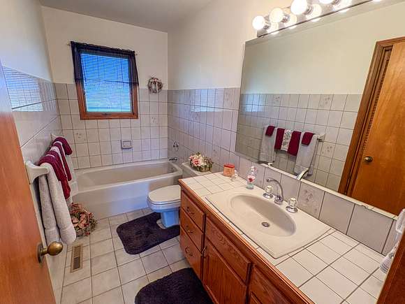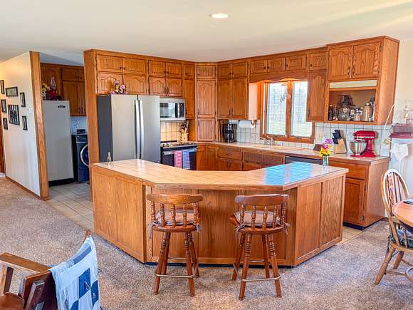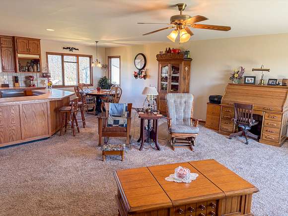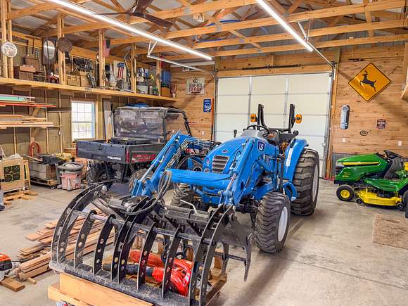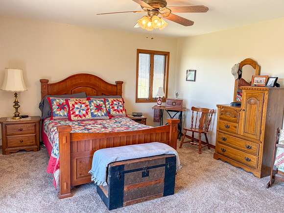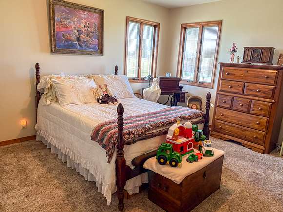 The property includes a 30x40 insulated shop (built in 2019/2020) with 12-foot sidewalls, a 10x12 garage door, full concrete flooring, 110 power, and a 10-foot lean-to. Additionally, the farm features: