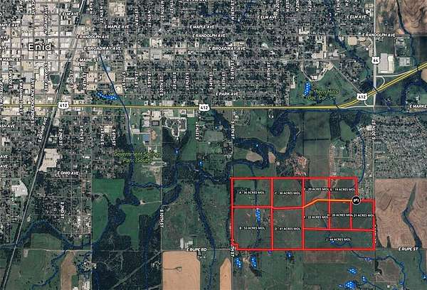 This 20-acre property, located just off paved South 30th Street, offers a unique opportunity to enjoy the peace and beauty of rural living while being conveniently close to downtown Enid. With its proximity to Highway 412, you're less than a mile from easy access to major routes, making this property as practical as it is picturesque. The land is entirely open grass and fertile tillable ground, making it ideal for a variety of uses. Whether you envision building your dream home, starting a ranch, cultivating crops, or creating a recreational retreat, this property provides a blank canvas to make your vision a reality. Its wide-open spaces and serene atmosphere create the feeling of being in the middle of nowhere while still being just minutes from the conveniences of town. Adjoining acreages are also available, offering even greater potential to expand and create a larger homestead or investment opportunity. With its excellent location and the versatility of the land, this property also has significant potential for future development, making it a smart choice for those looking to invest in the future. Whether you're seeking a private retreat, a productive farm, or a promising development opportunity, this 20-acre tract has it all. Contact us today to schedule a visit and discover the endless possibilities this exceptional property has to offer!