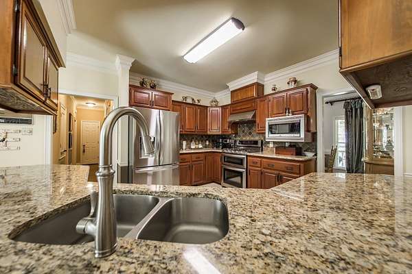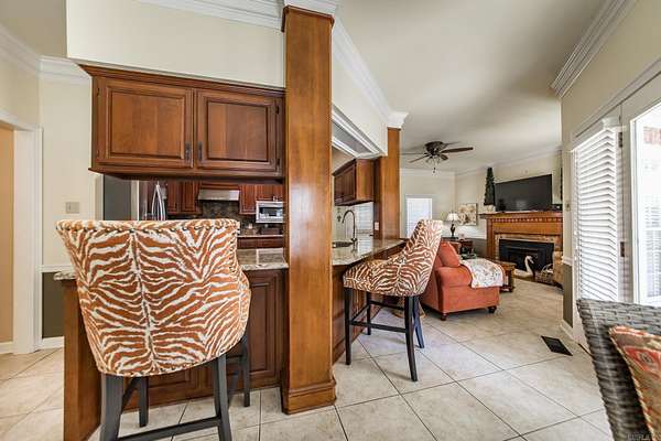 - Breakfast Bar, Built-Ins, Ceiling Fan(s), Dryer Connection-Electric, Granite Slab Kit Counter, Walk-In Closet(s), Walk-In Shower, Washer Connection, Water Heater-Gas